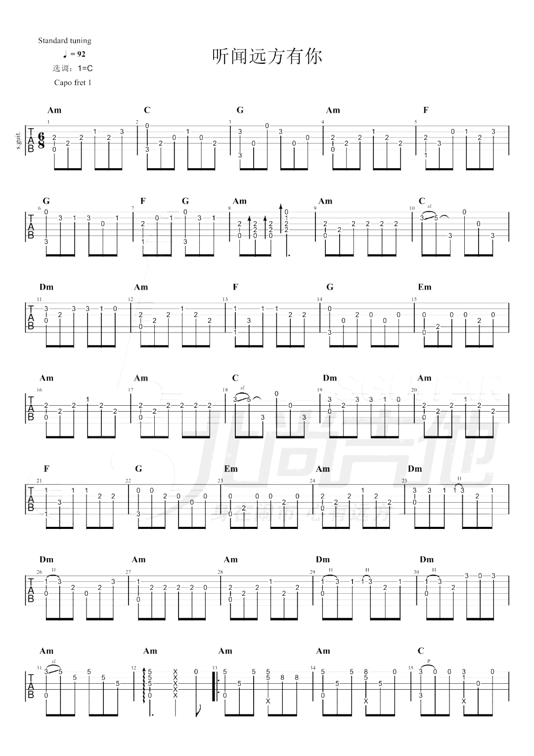 听闻远方有你指弹谱_刘钧_吉他独奏谱...