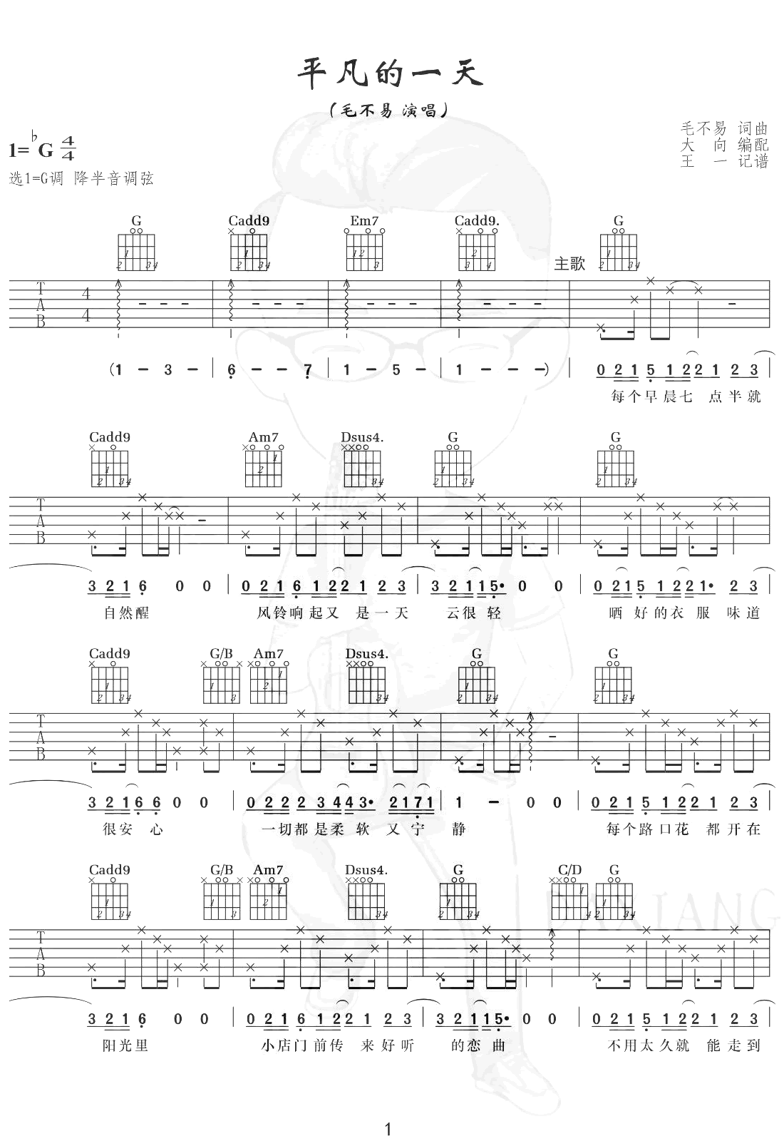 平凡的一天吉他谱_毛不易_原版吉他谱_弹唱六线谱...