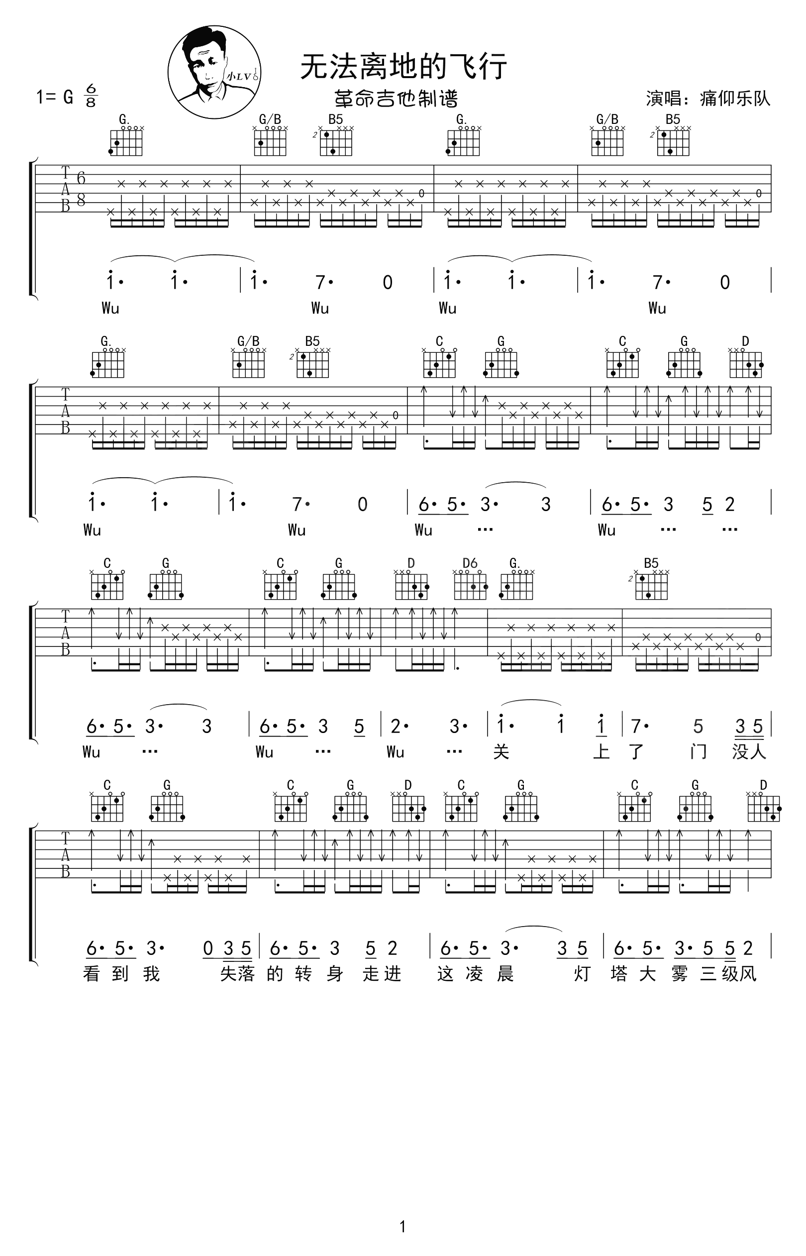 痛仰乐队《无法离地的飞行》吉他谱-G调弹唱谱原版高清...