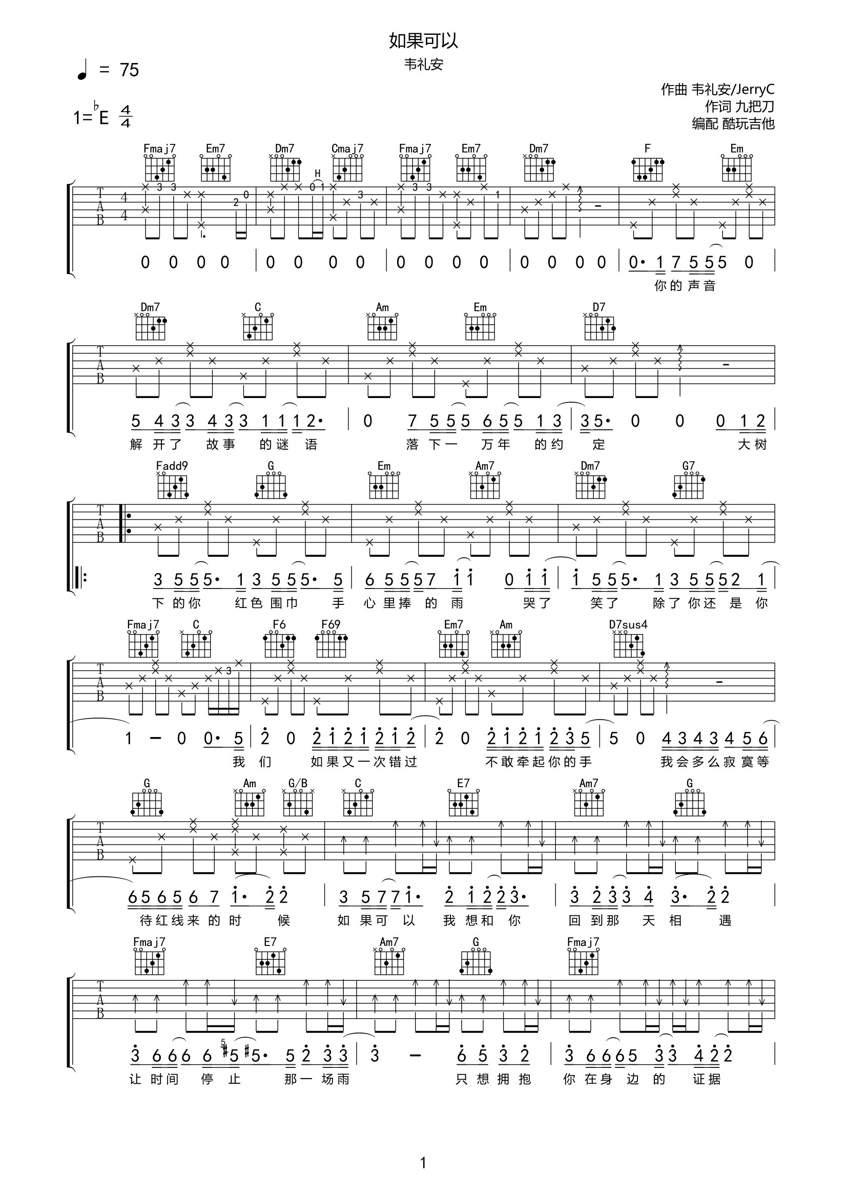 韦礼安《如果可以》吉他谱-C调弹唱谱高清原版微信/抖音:kwjitar...