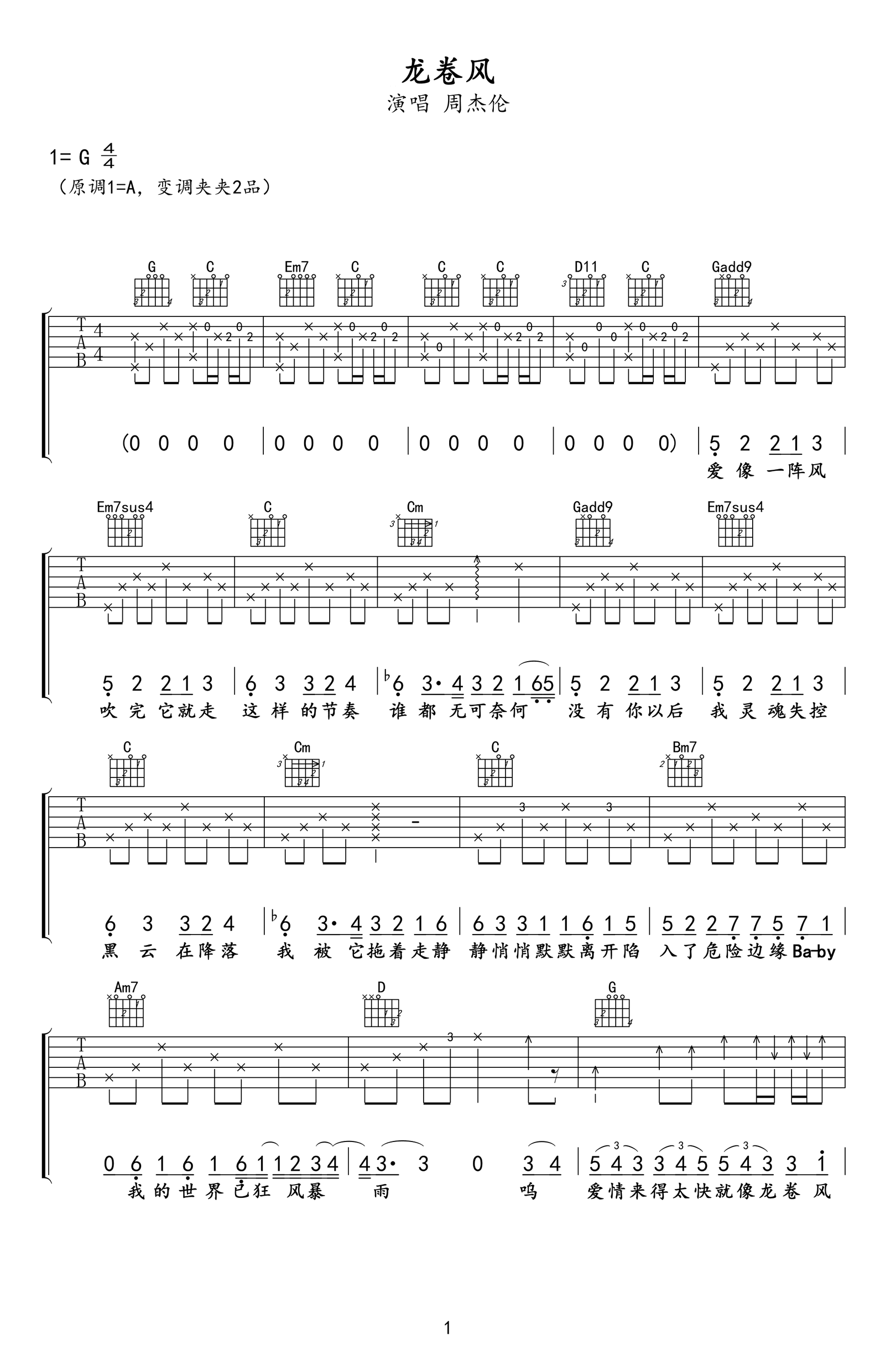 龙卷风吉他谱_G调_周杰伦/五月天_弹唱谱_高清六线谱...