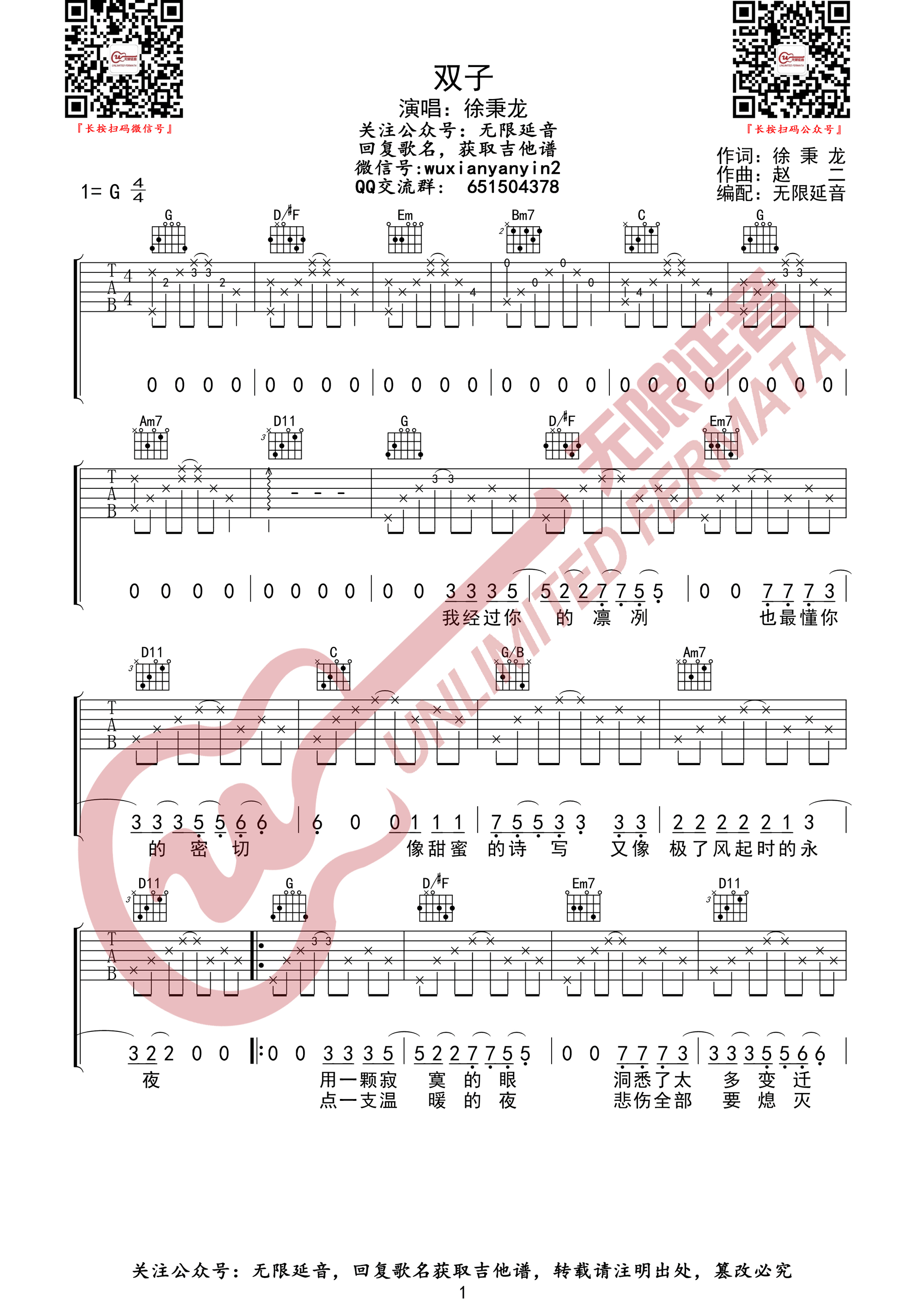 徐秉龙《双子》吉他谱G调原版弹唱谱...