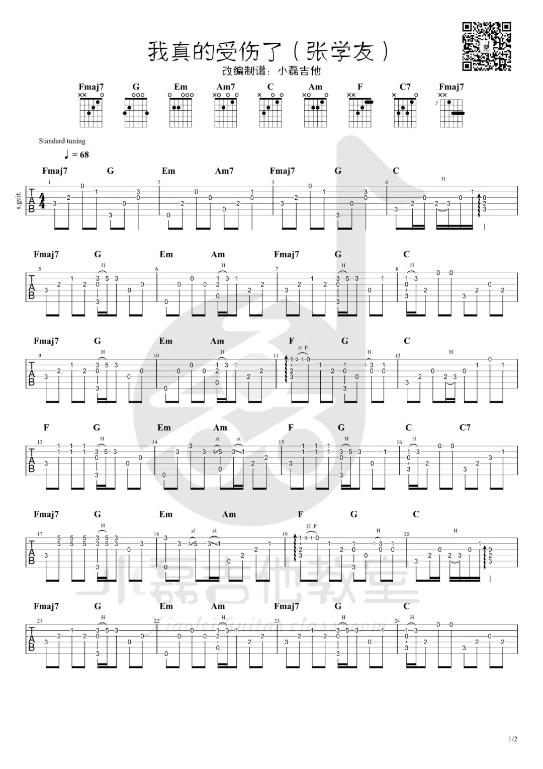 吉他张学友《我真的受伤了》吉他谱 指弹吉他谱