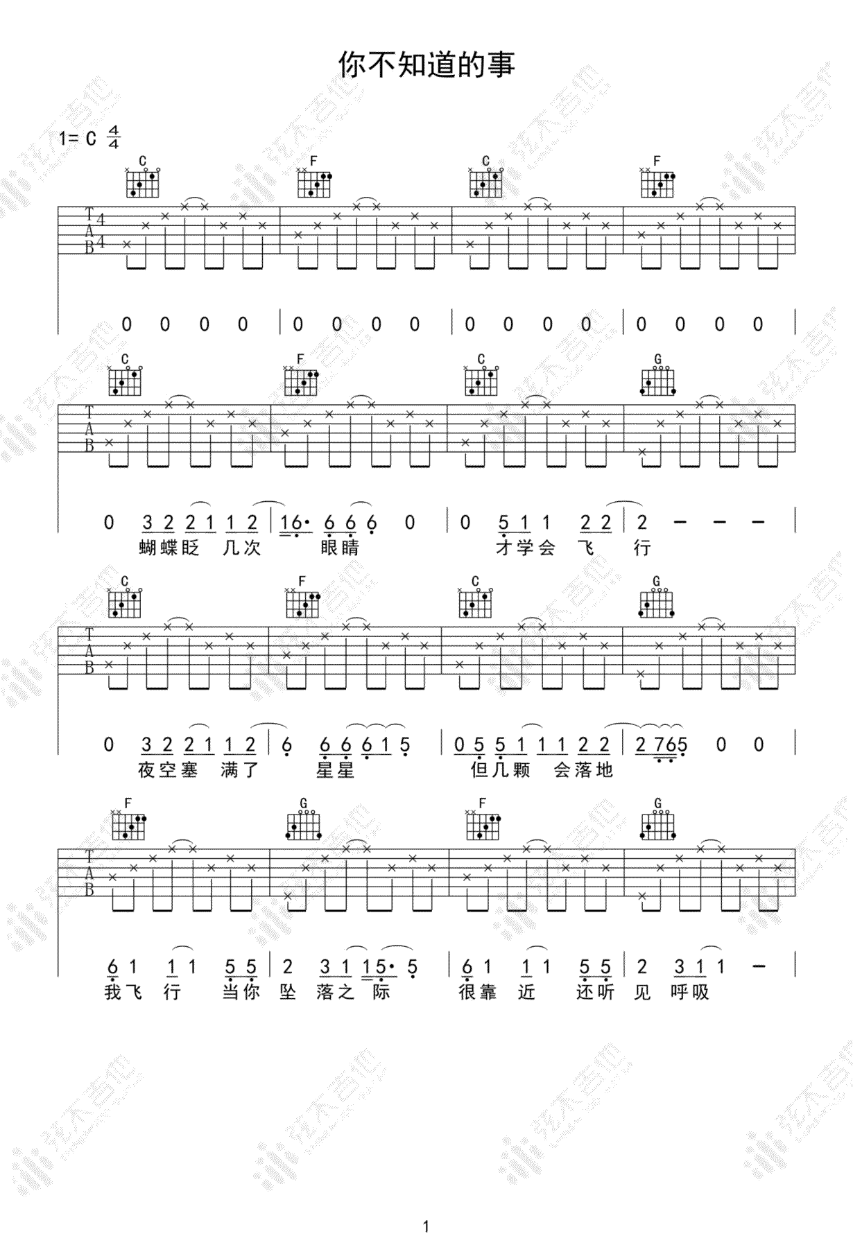 王力宏《你不知道的事》吉他谱C调简单版弹唱谱...