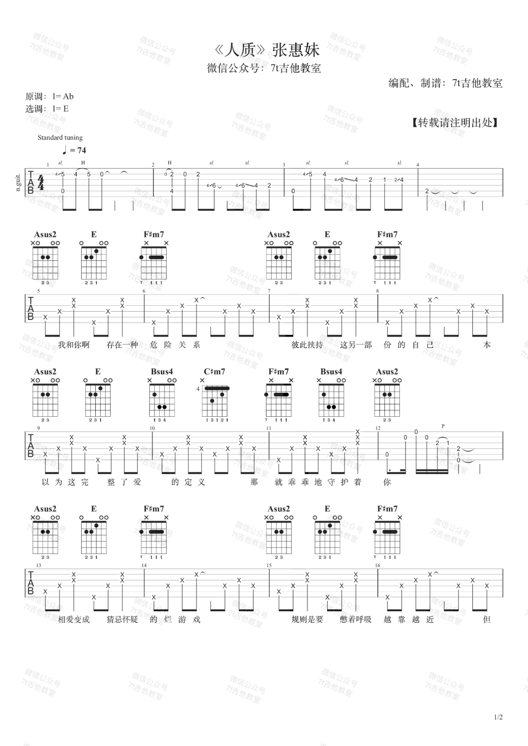 张惠妹《人质》吉他谱E调原版弹唱谱...