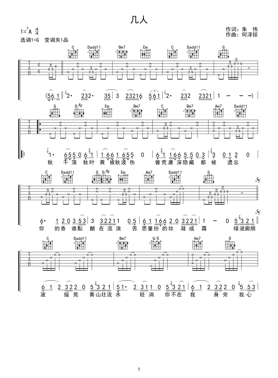 吉他要不要买菜《几人》吉他谱 G调原版弹唱谱