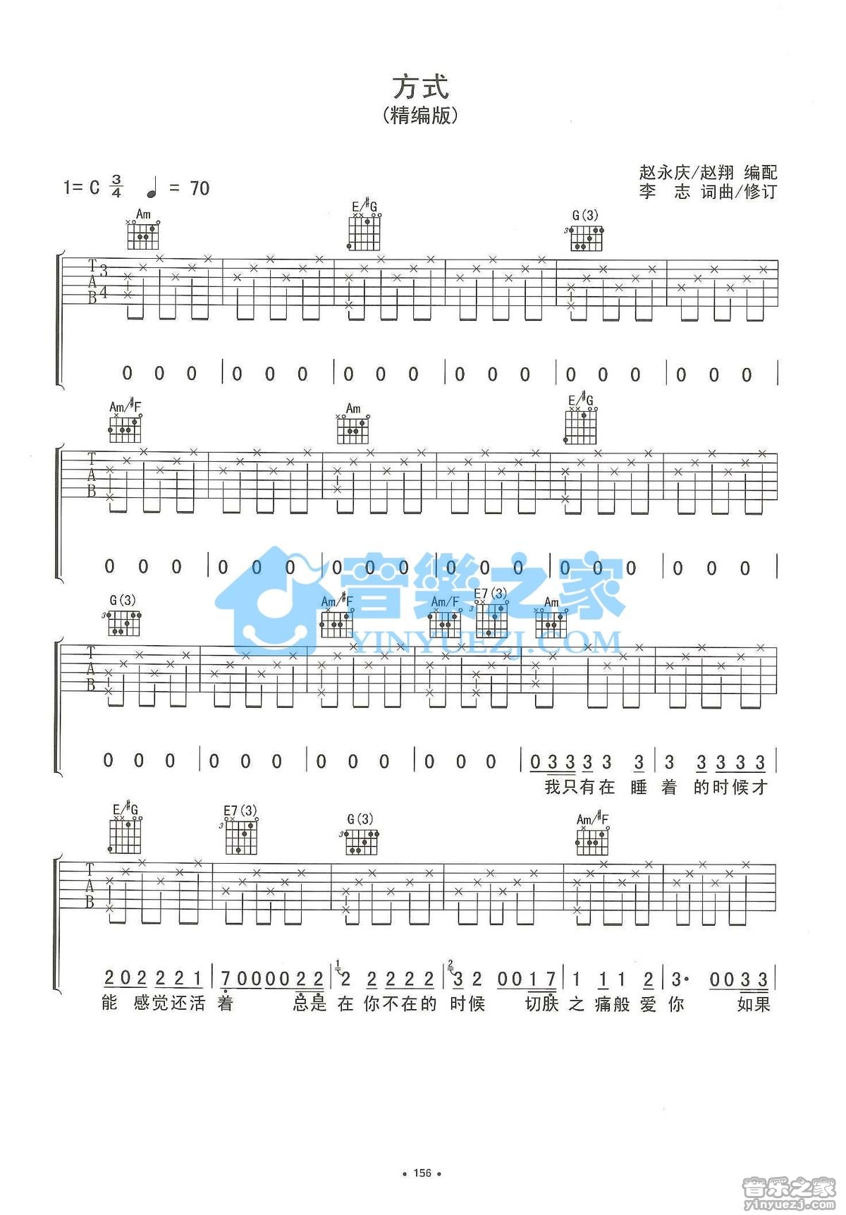 C调版李志《方式》吉他弹唱六线谱...