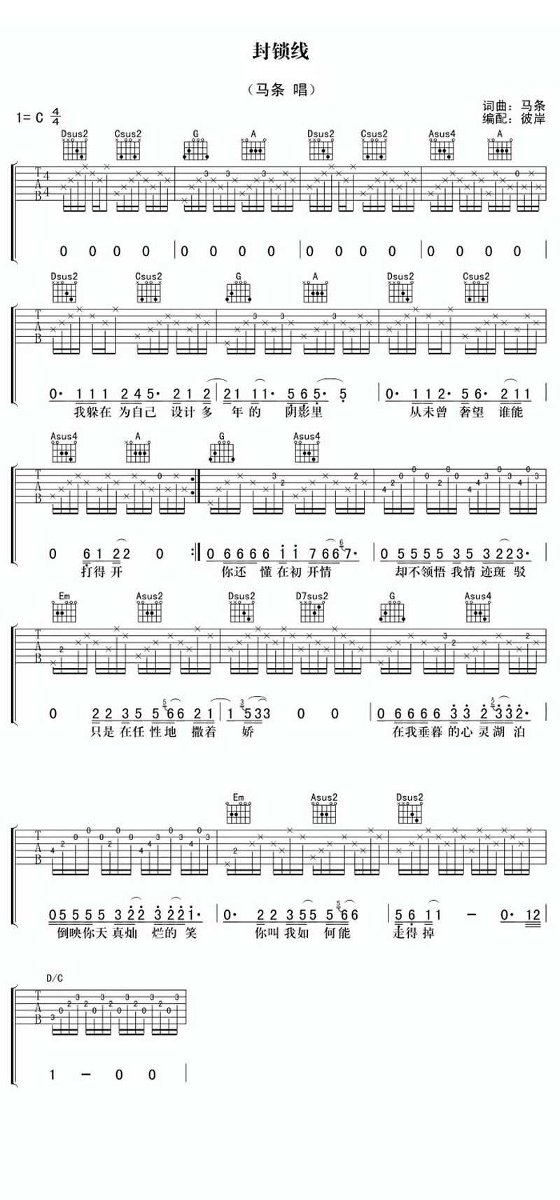 吉他马条《封锁线》吉他谱_吉他弹唱谱