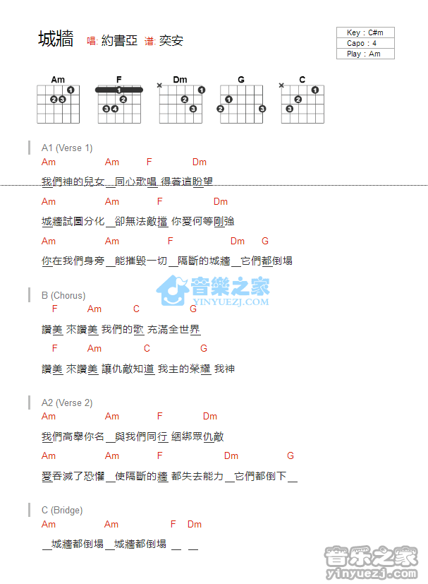 吉他约书亚《城墙》吉他谱_吉他弹唱谱