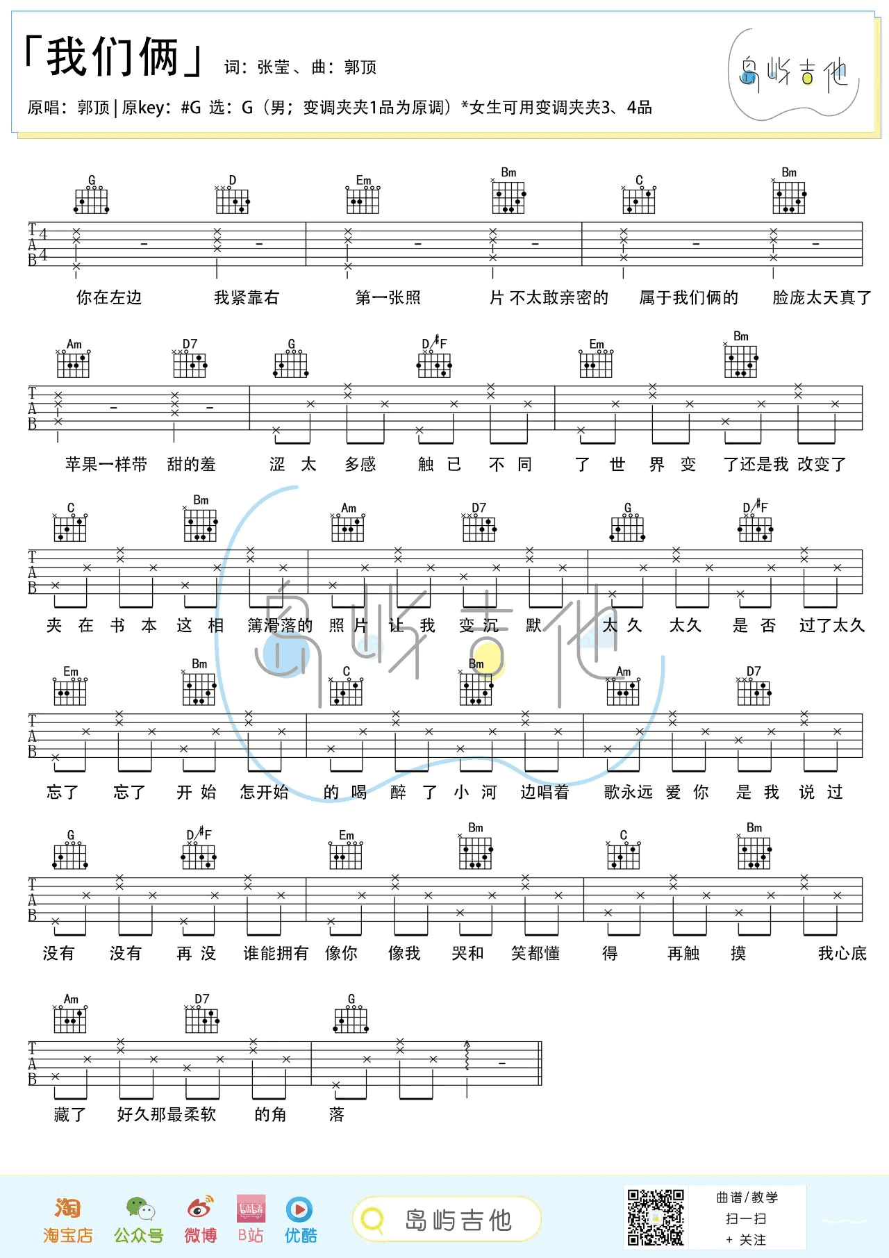 郭顶《我们俩》吉他谱G调弹唱谱...