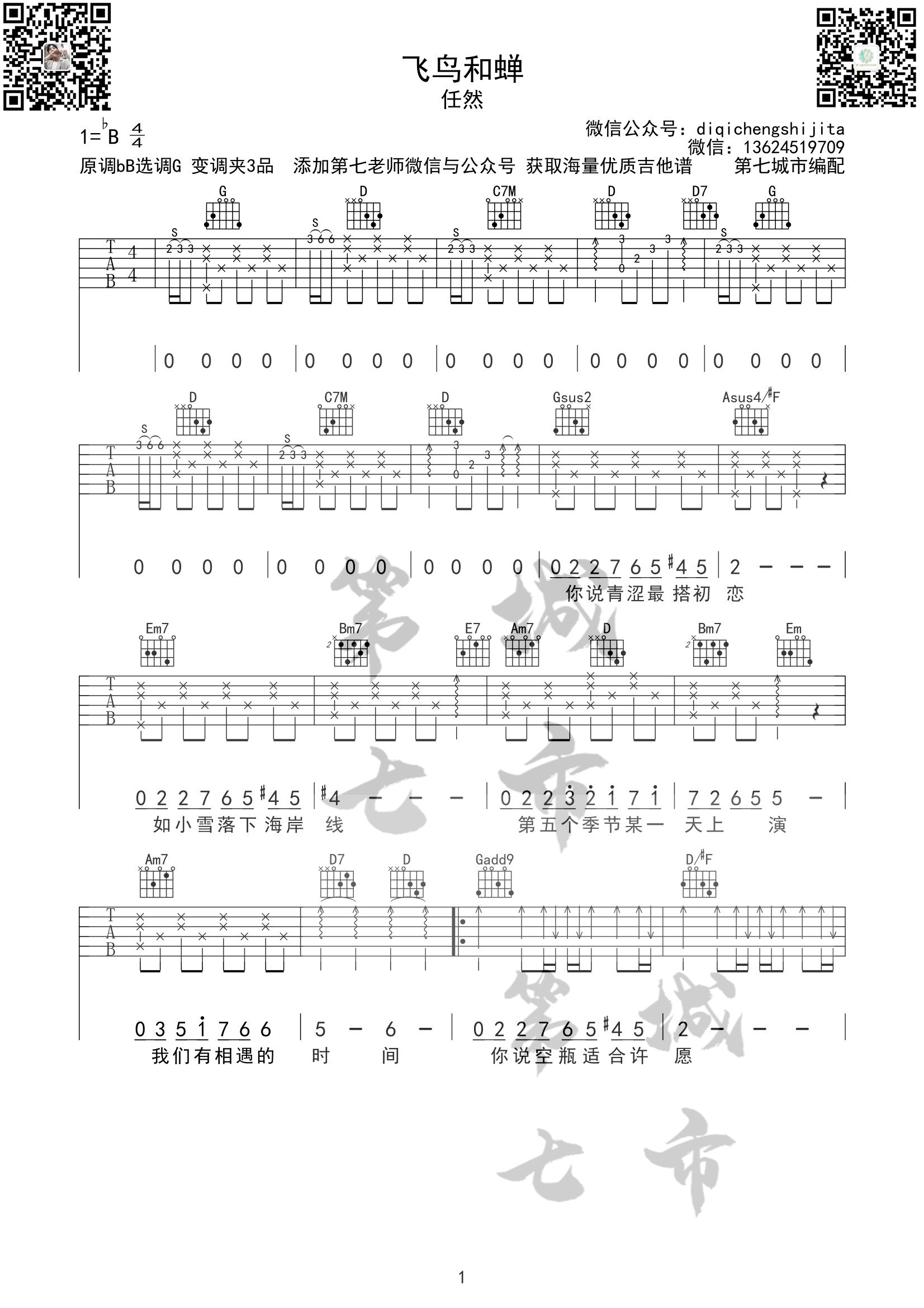 吉他飞鸟和蝉 任然 吉他谱