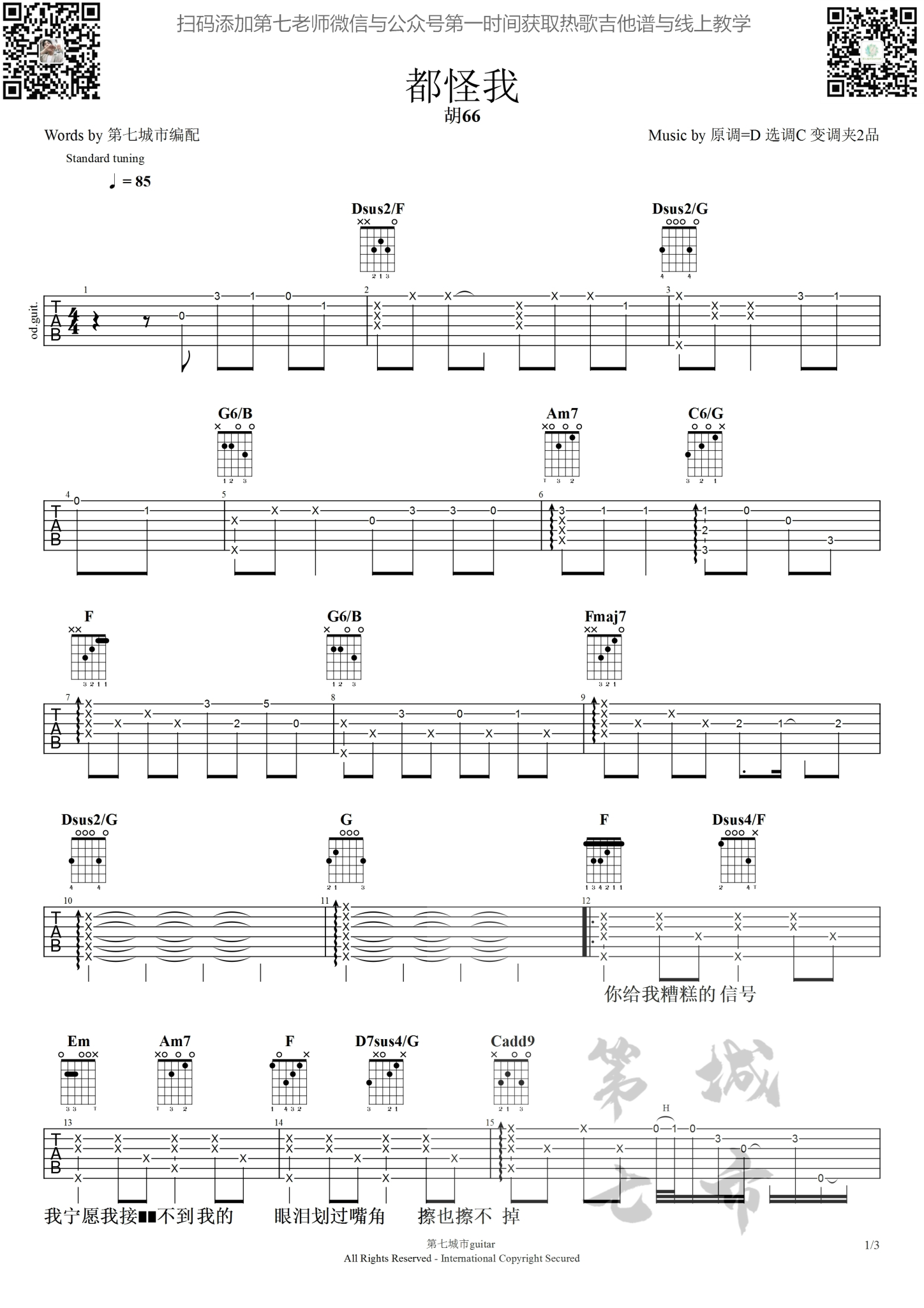 吉他都怪我 胡66 原版吉他谱 第七城市编配