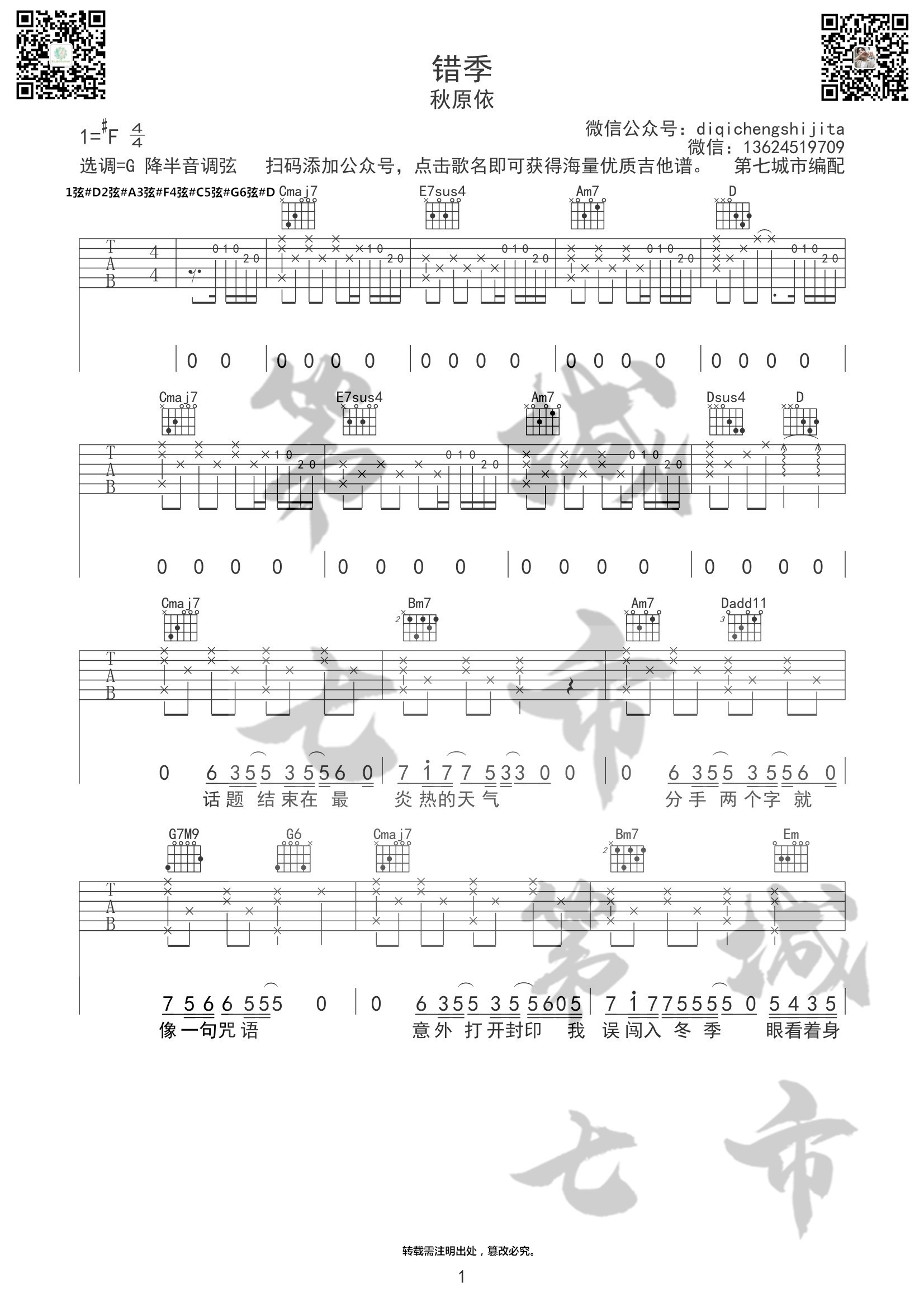 错季秋原依吉他谱第七城市编配...