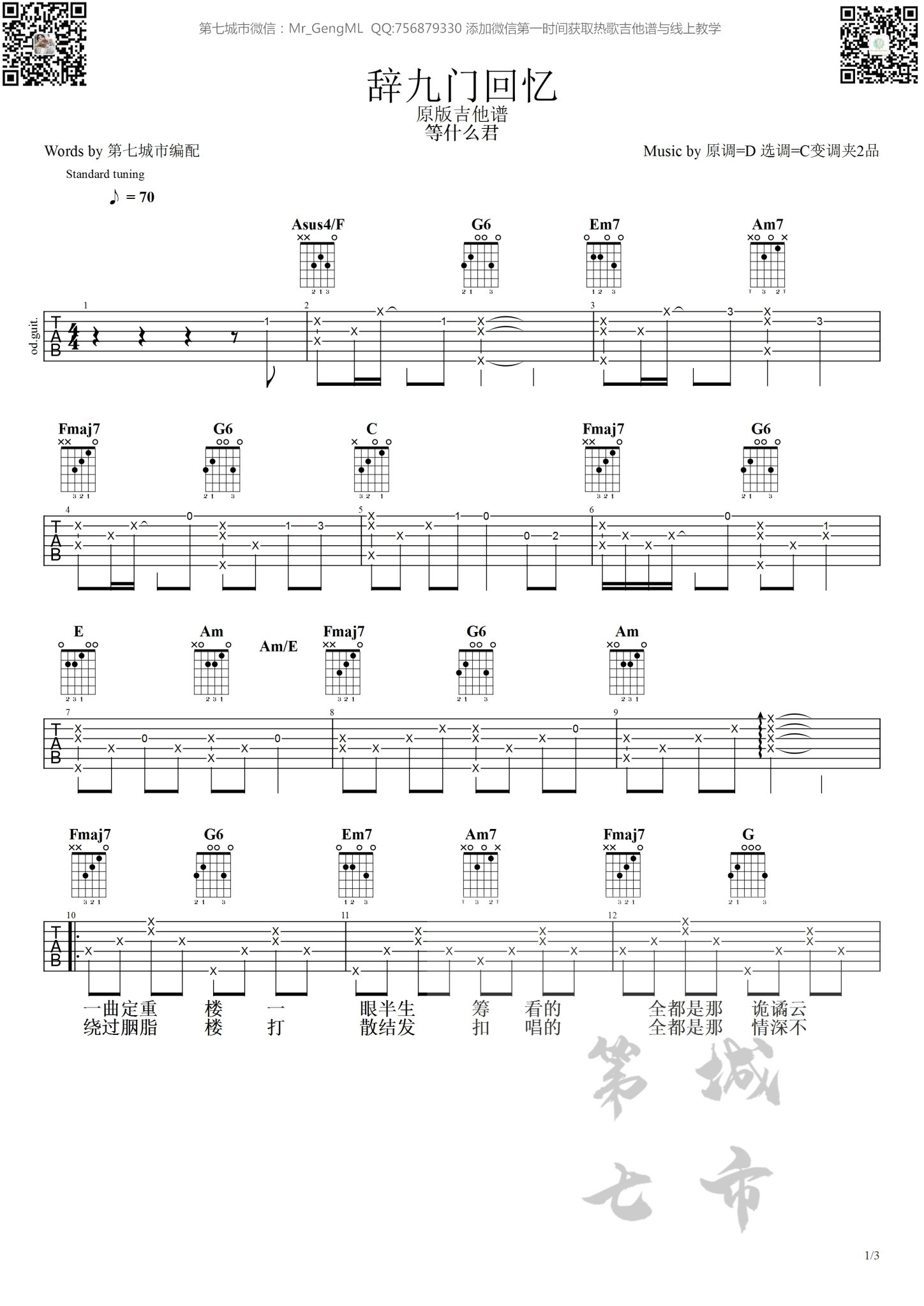 辞九门回忆等什么君原版吉他谱第七城市编配...
