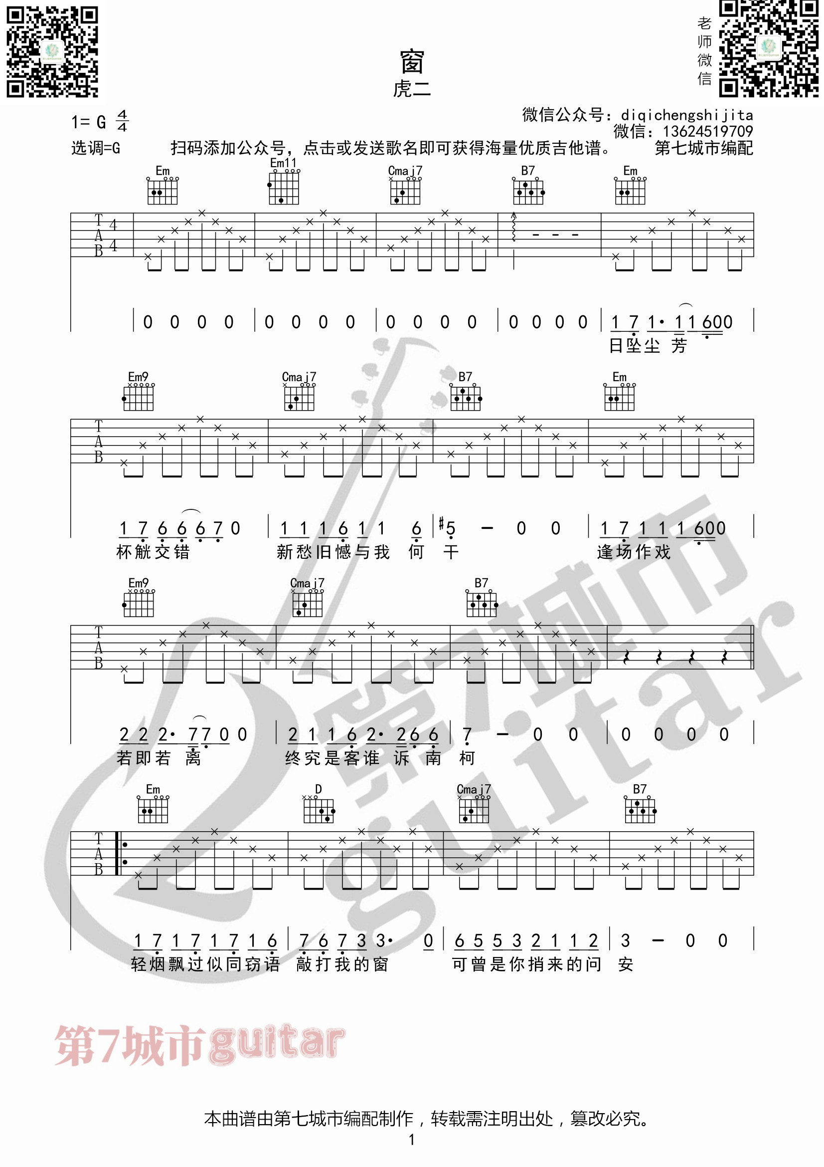 吉他窗 虎二 吉他谱 第七城市编配