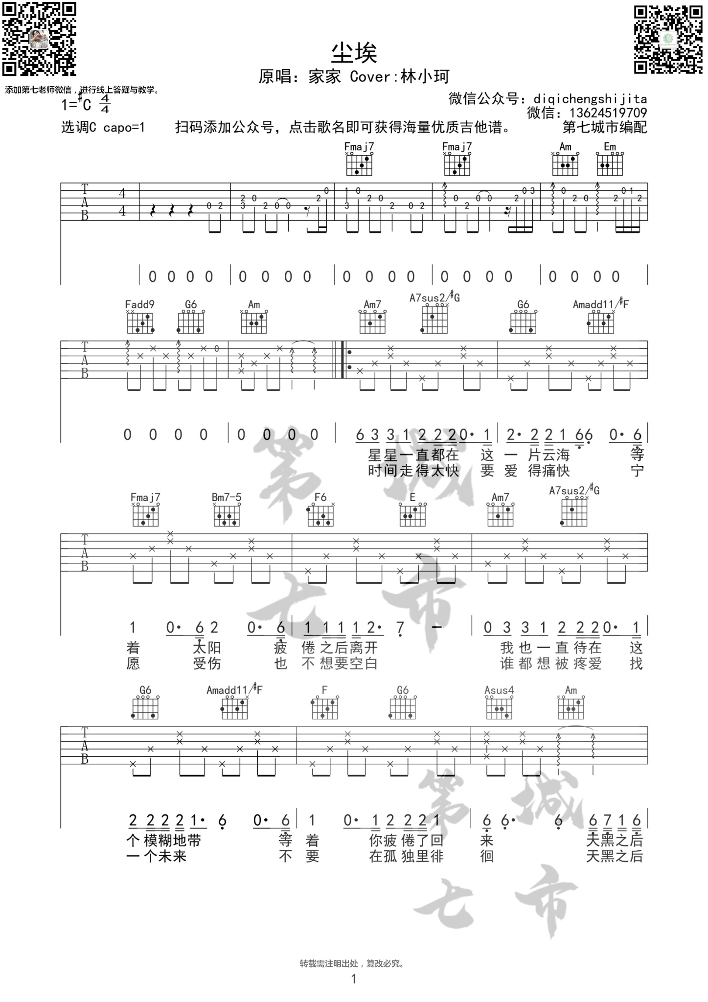 尘埃吉他谱...