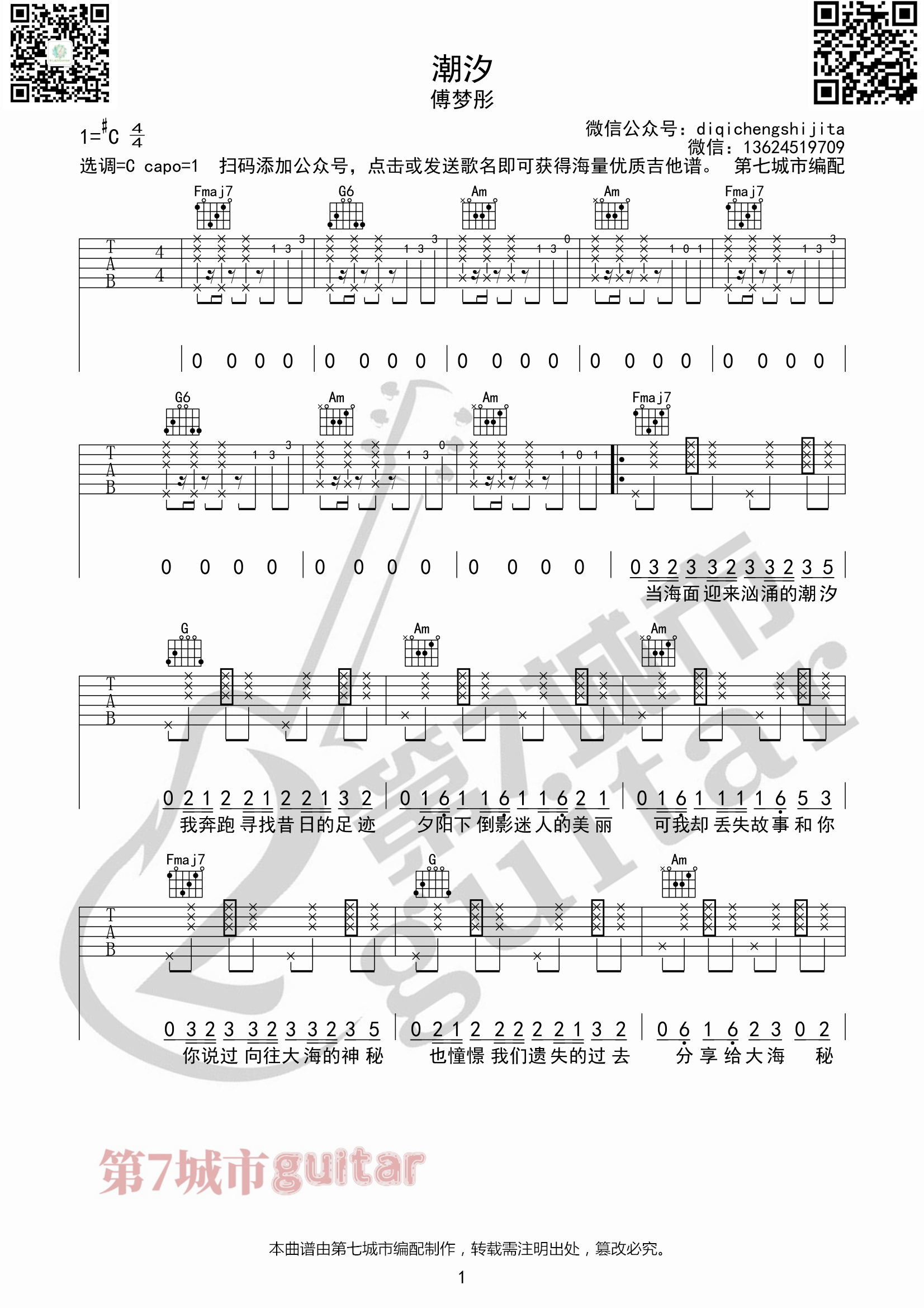 吉他潮汐 吉他谱 第七城市编配