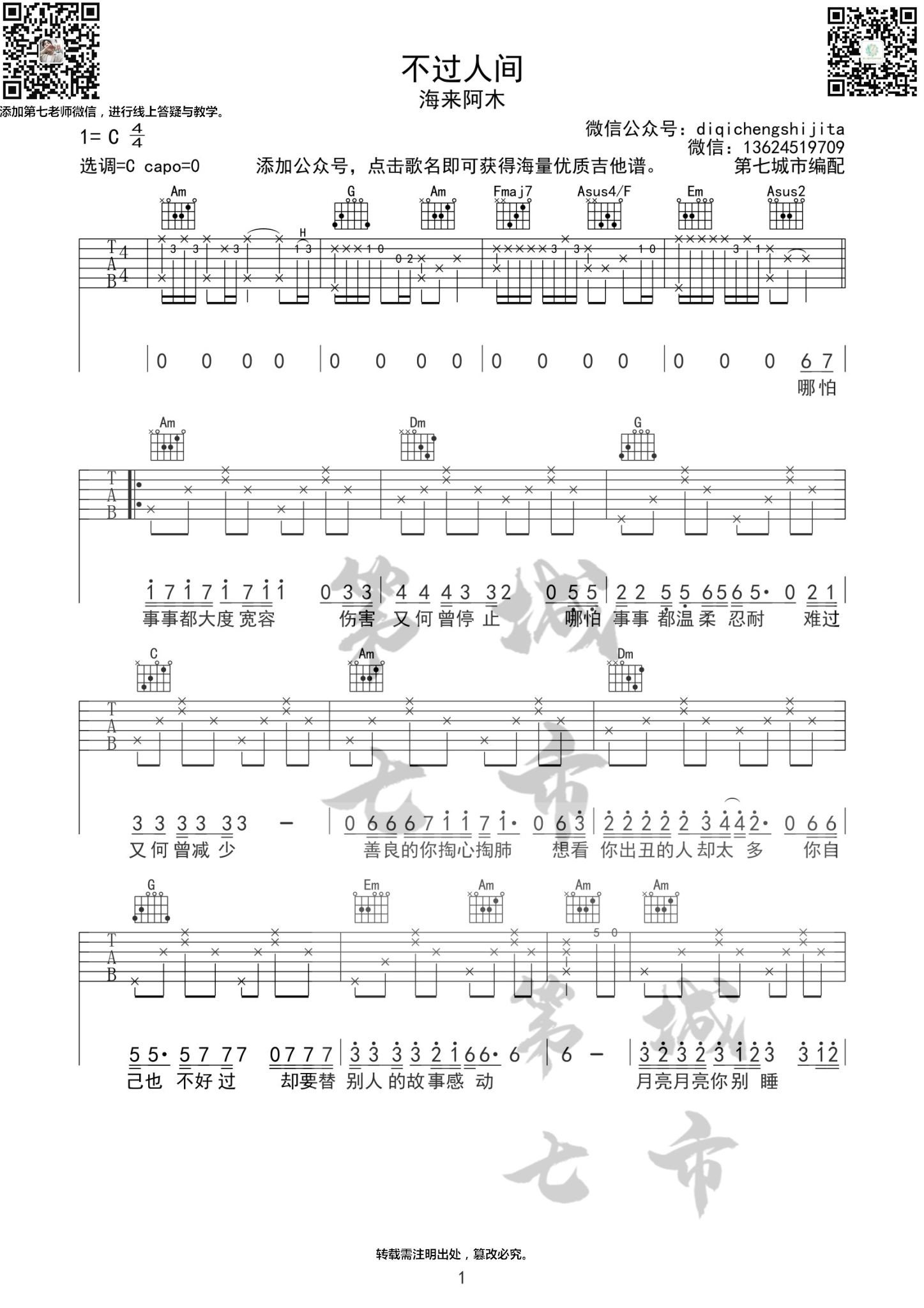 不过人间海来阿木吉他谱第七城市编配...