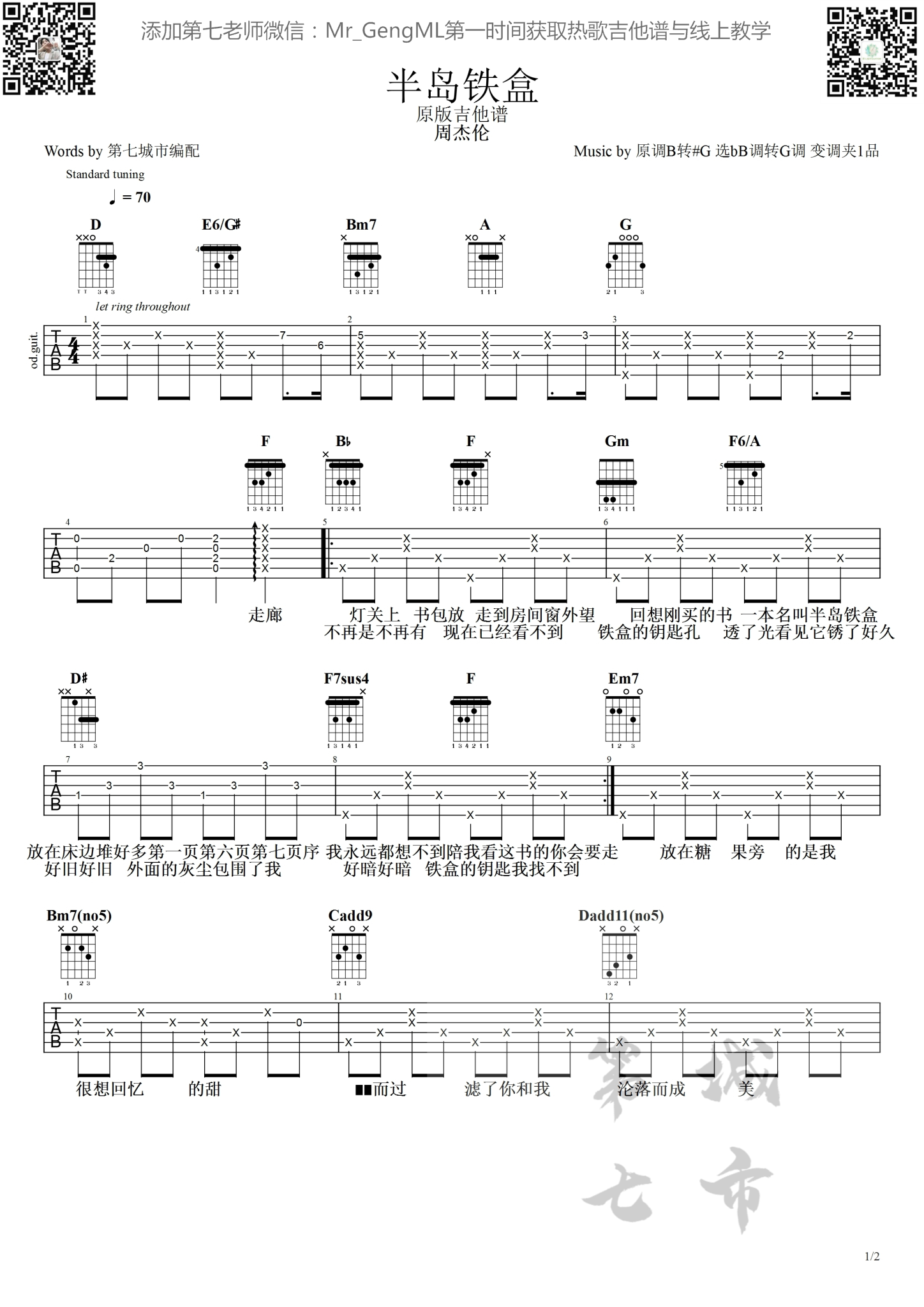 吉他半岛铁盒 周杰伦 第七城市编配