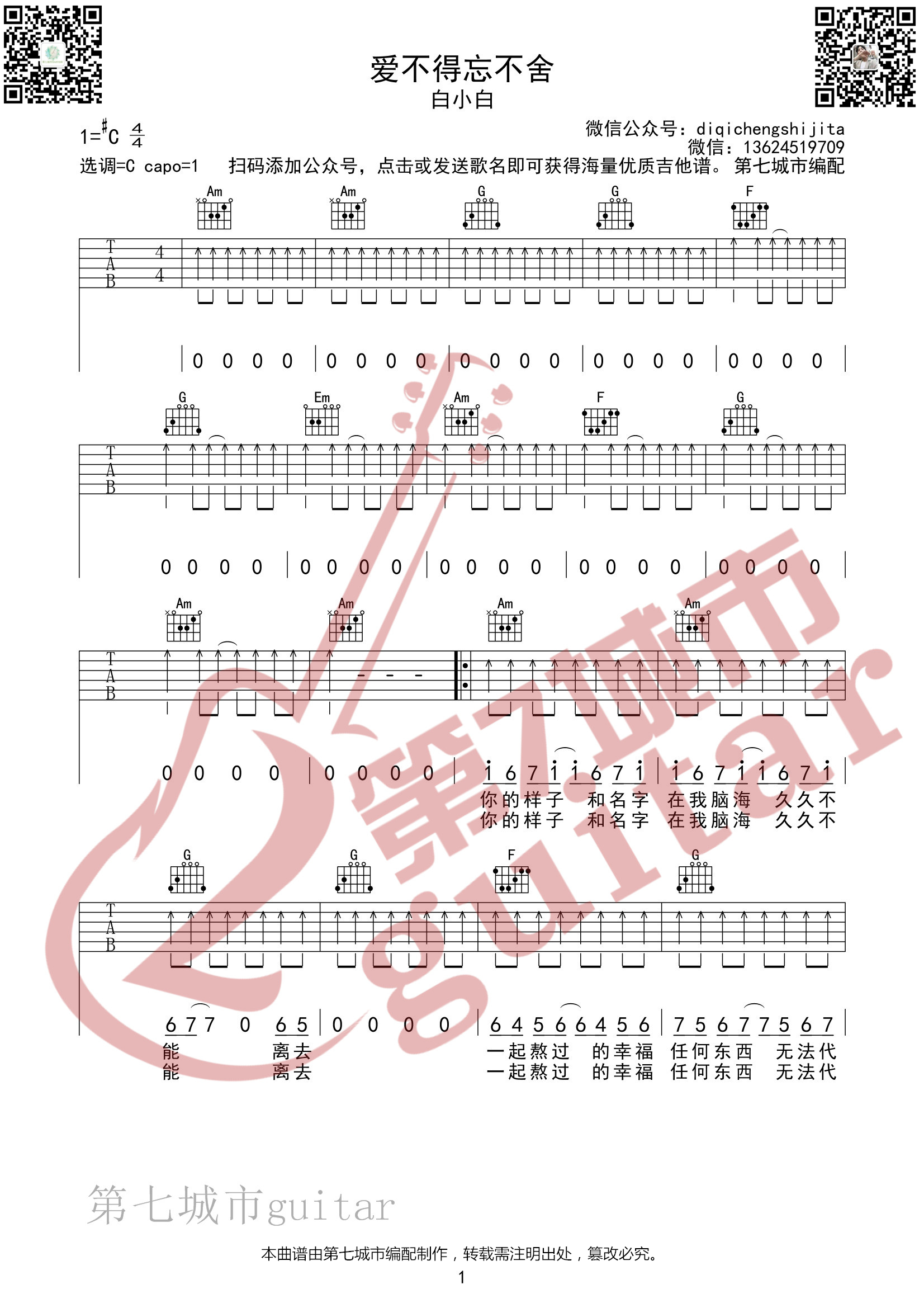 吉他爱不得忘不舍吉他谱