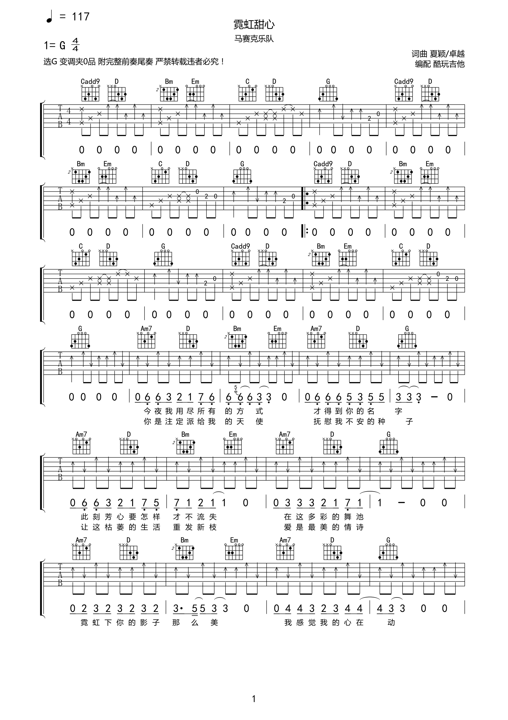 吉他马赛克乐队《霓虹甜心》吉他谱-G调弹唱谱完整前奏尾奏