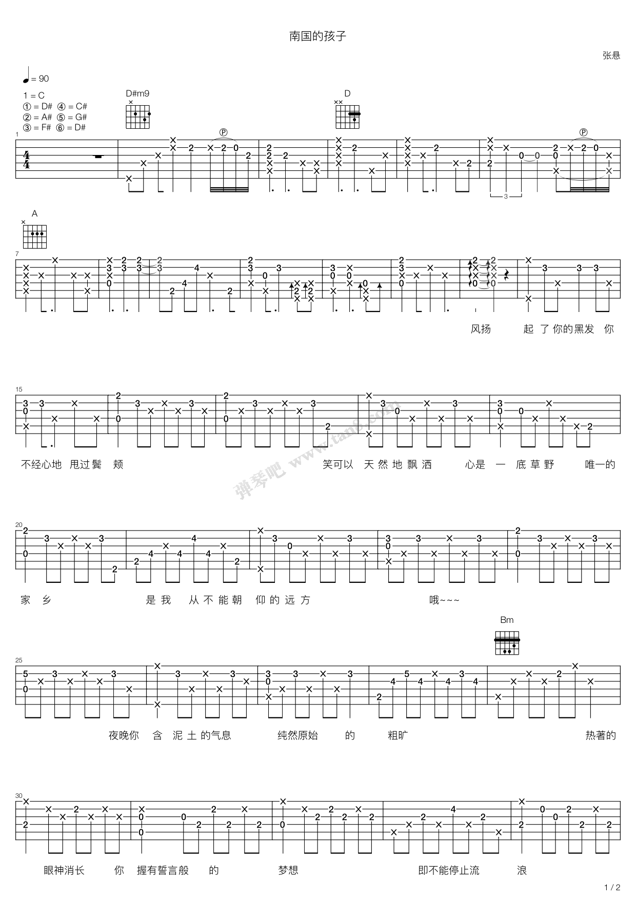 吉他张悬《南国的孩子》吉他谱 C调附前奏