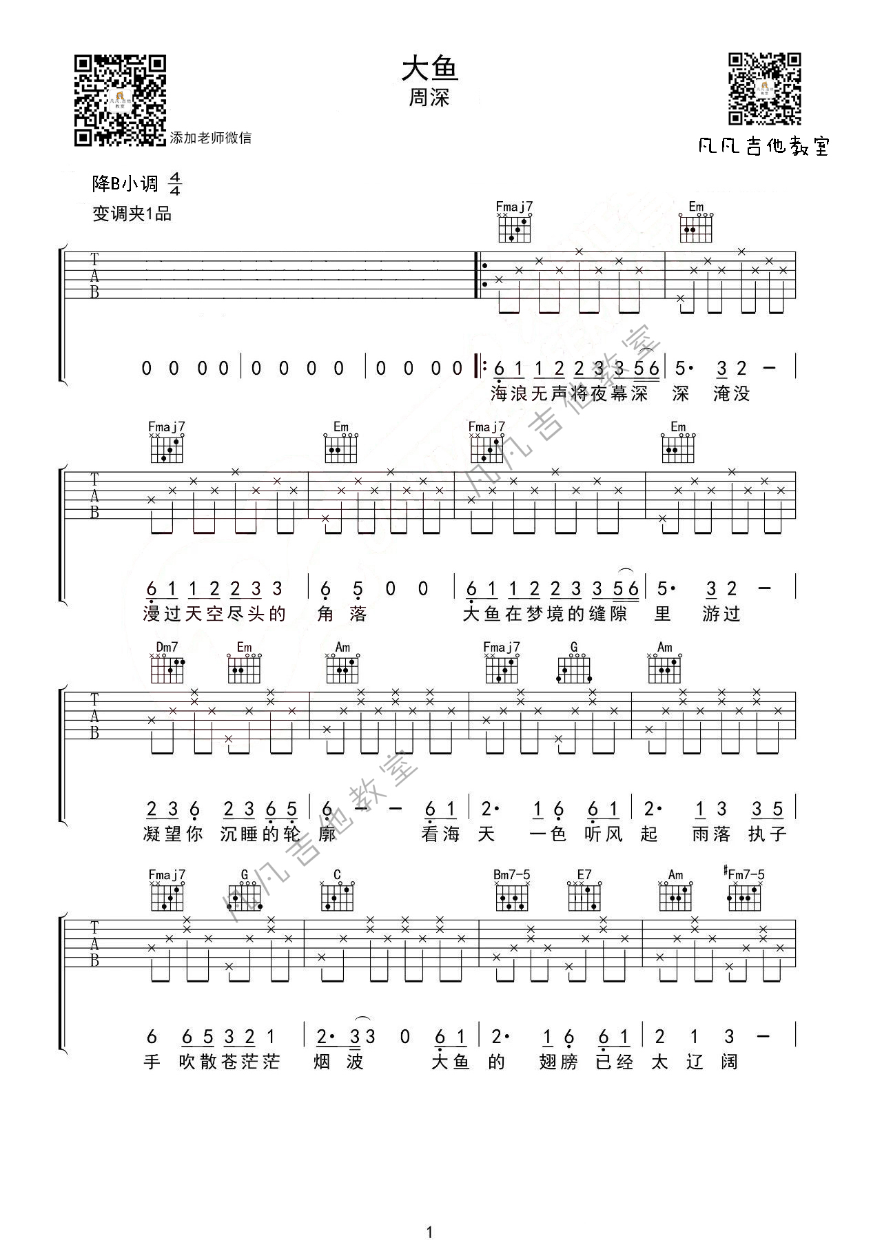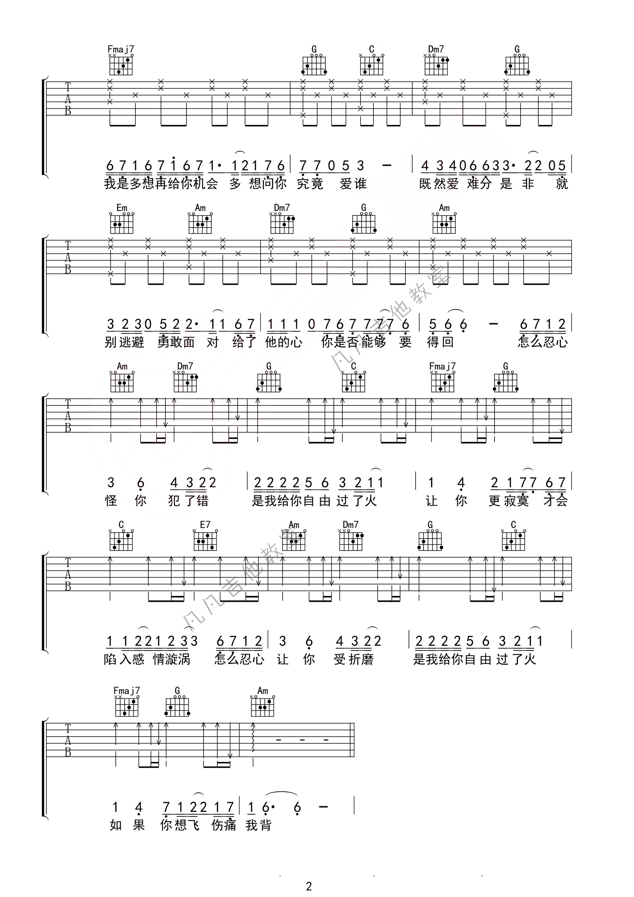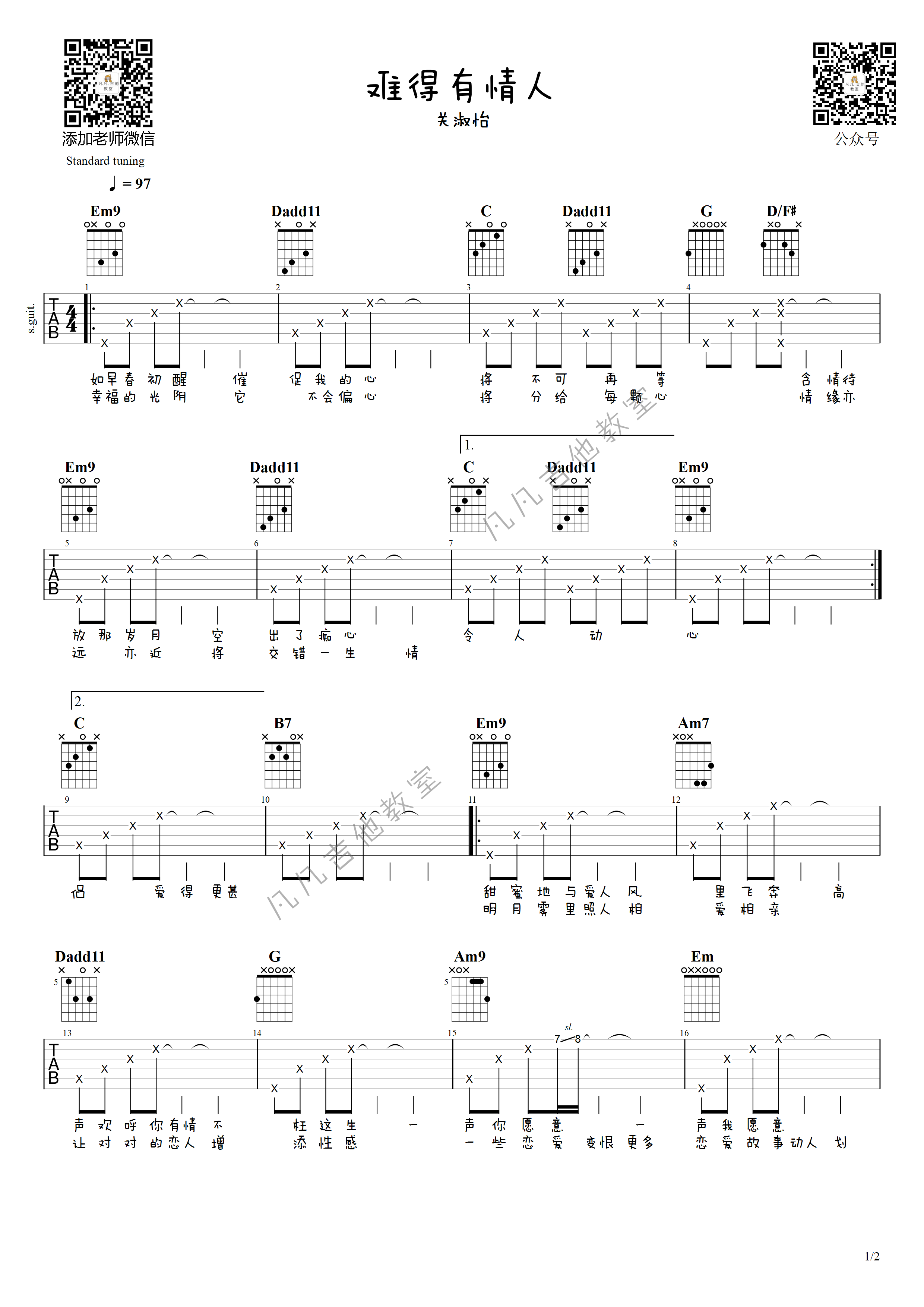 _姜育恒《再回首》吉他谱G调高清版_凡凡吉他教室编配_...