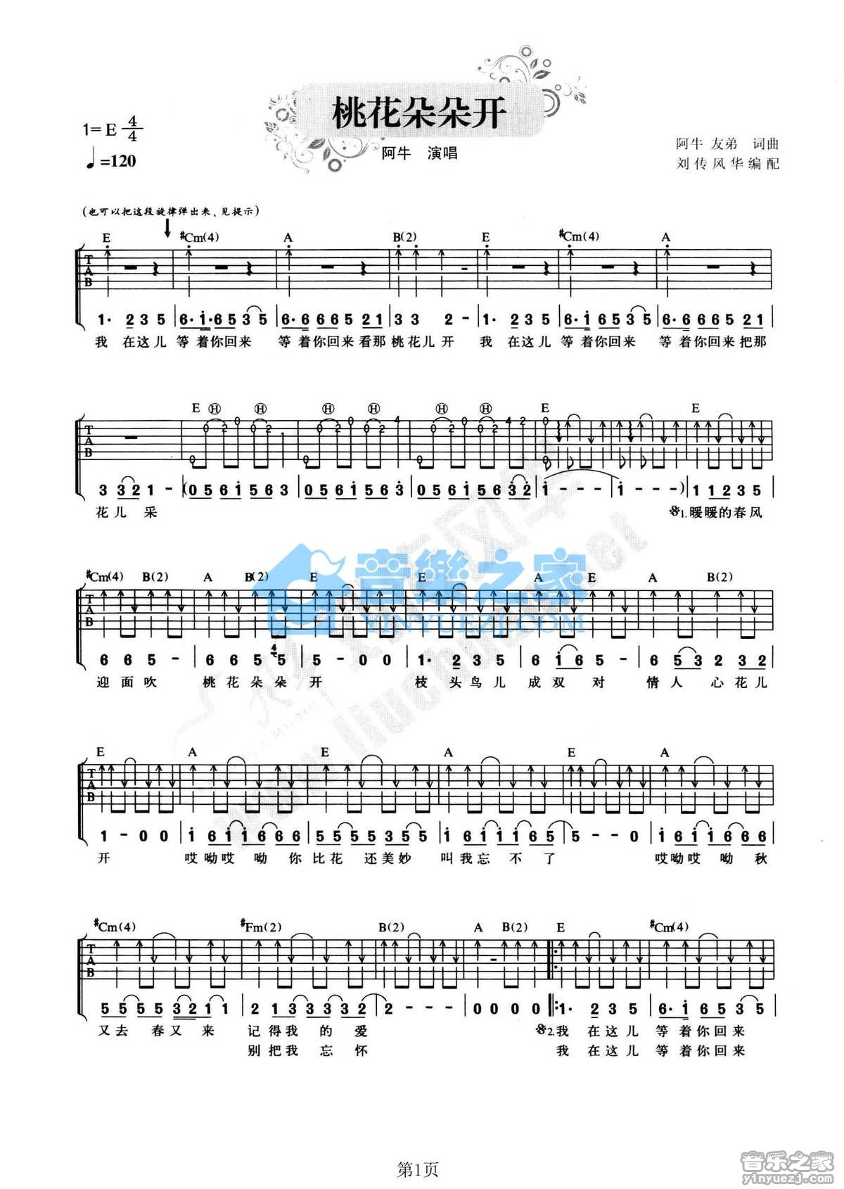 吉他阿牛《桃花朵朵开》吉他谱_吉他弹唱谱_YYZJ编配