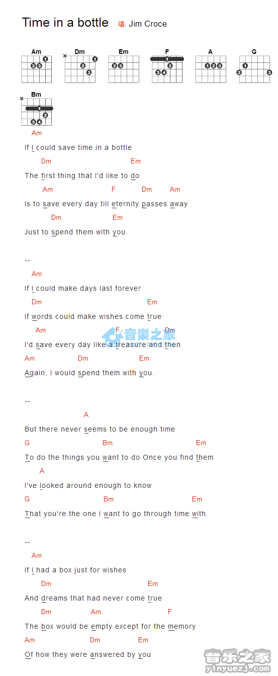 JimCroce《TimeInABottle》吉他和弦弹唱谱...