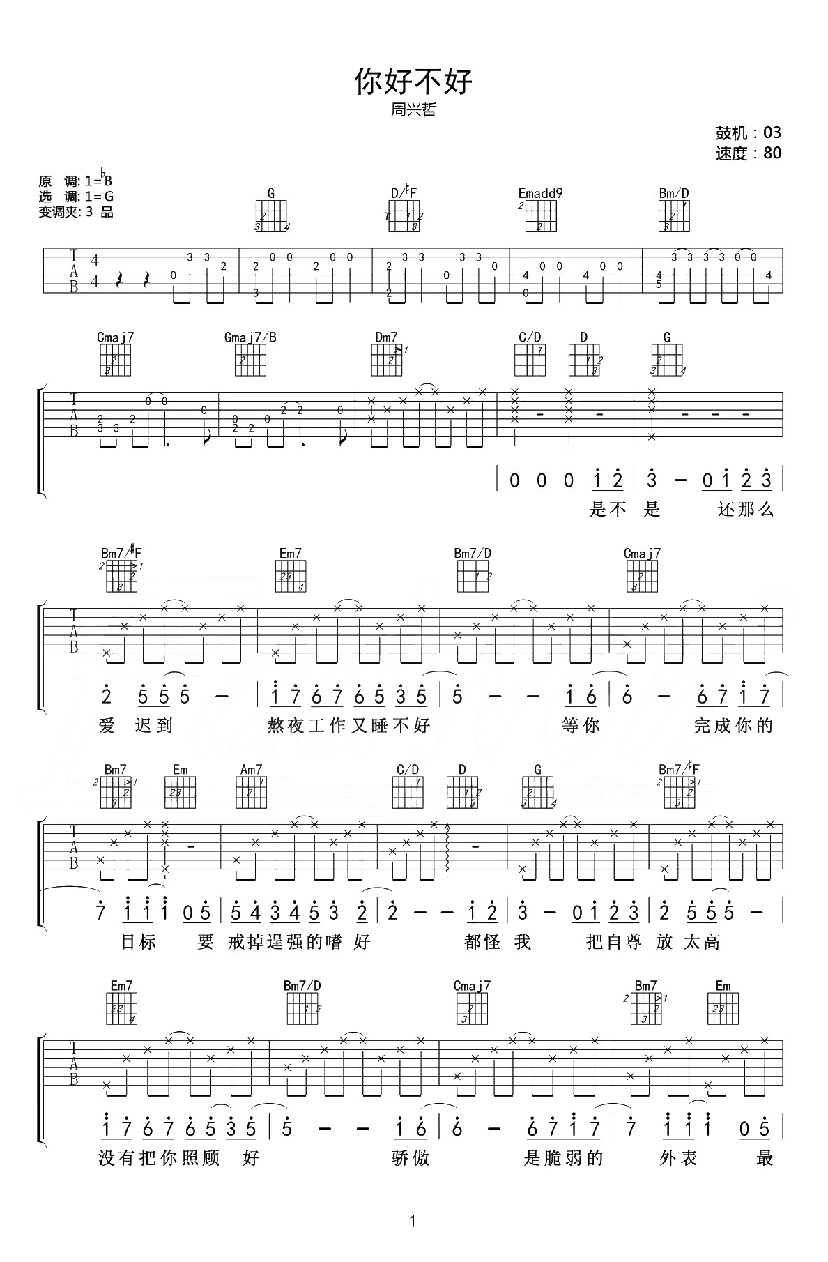 吉他周兴哲《你好不好》吉他谱_吉他弹唱谱_爱德文吉他编配