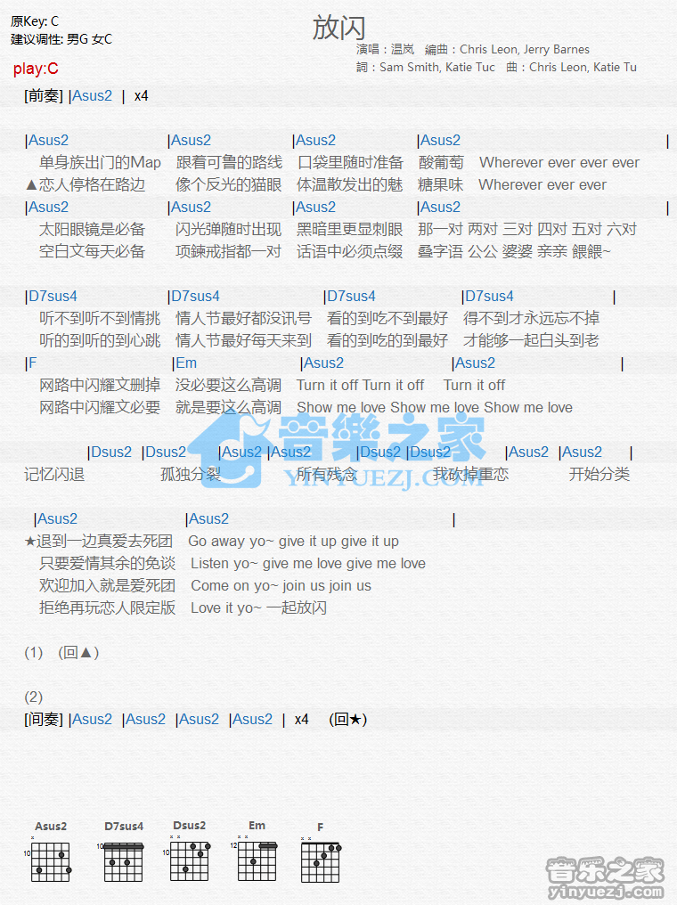 吉他温岚《放闪》吉他谱_吉他弹唱谱_YYZJ编配