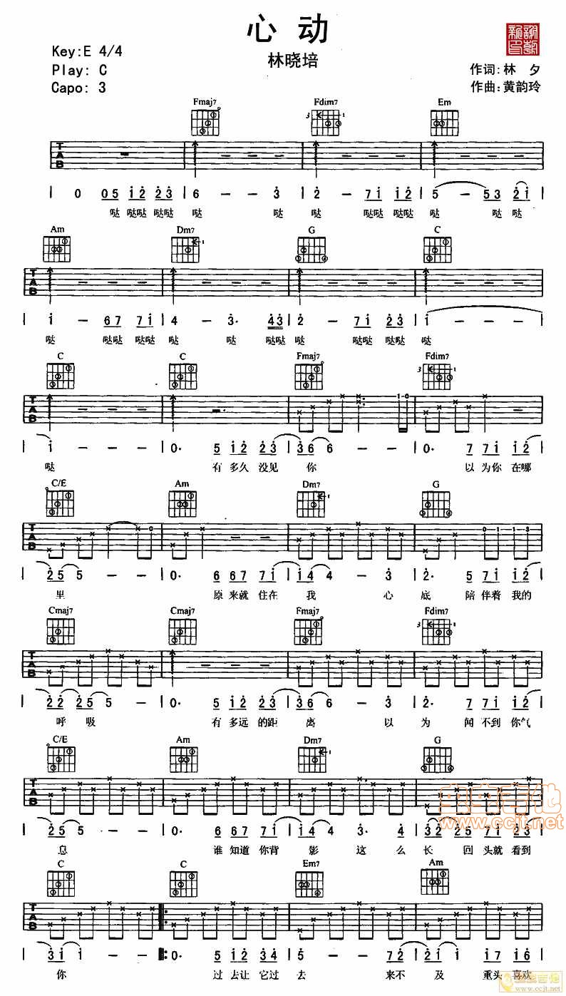 林晓培《心动》吉他谱C调扫弦版...