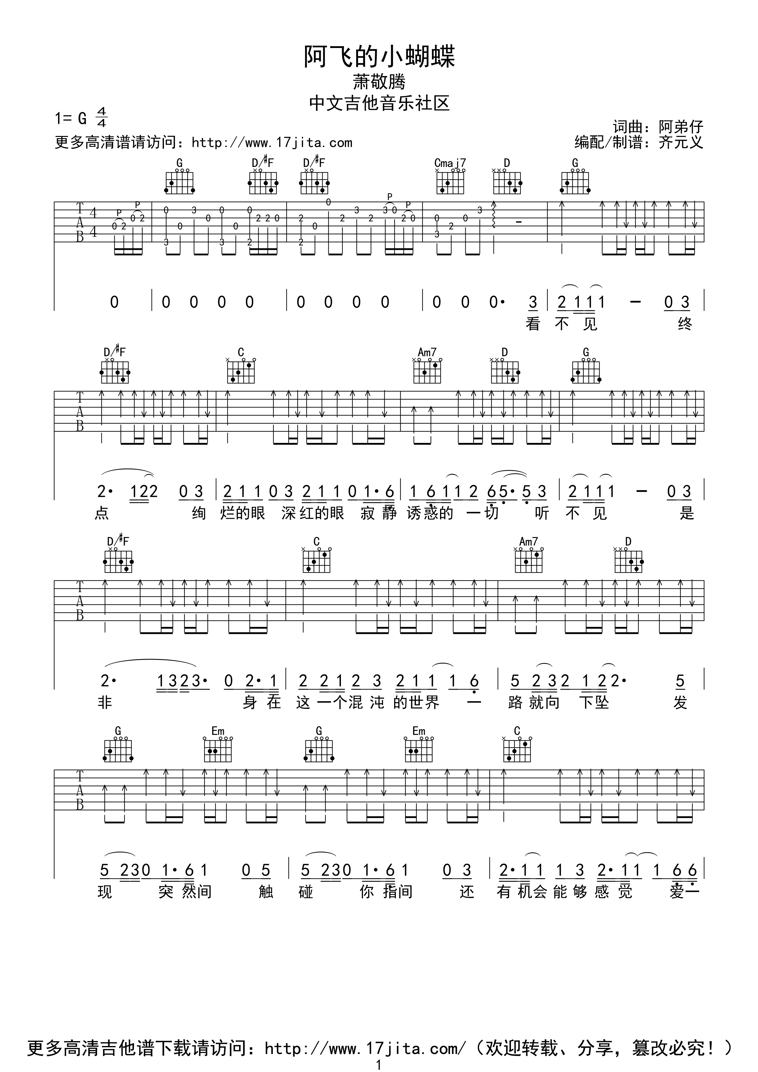 萧敬腾《阿飞的小蝴蝶》吉他谱...