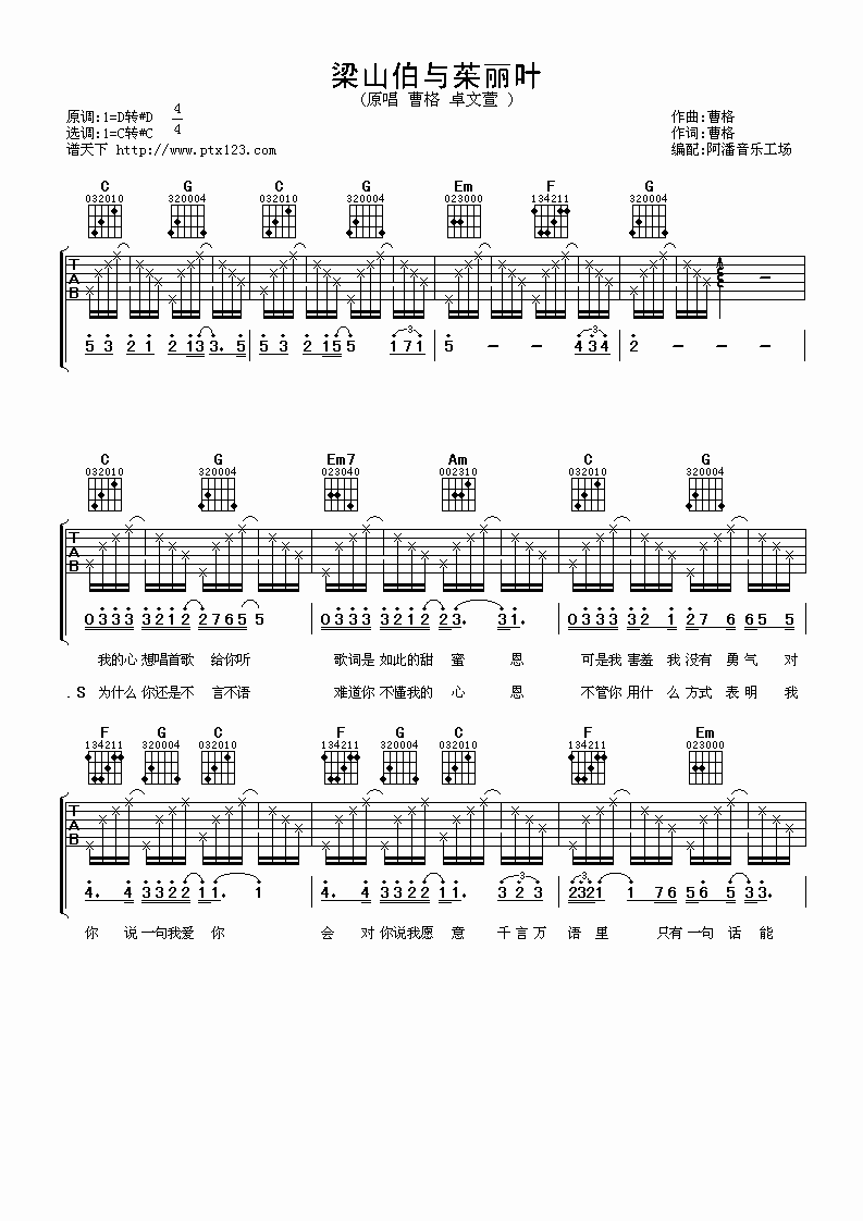 吉他卓文萱《梁山伯与茱丽叶》吉他谱
