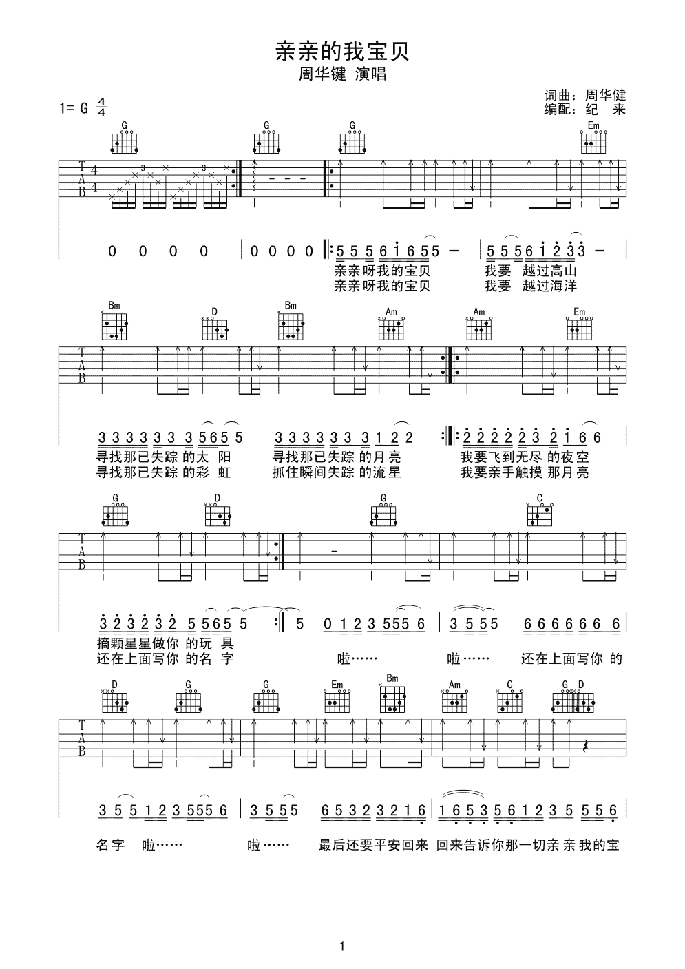 周华健《亲亲的我宝贝》吉他谱...