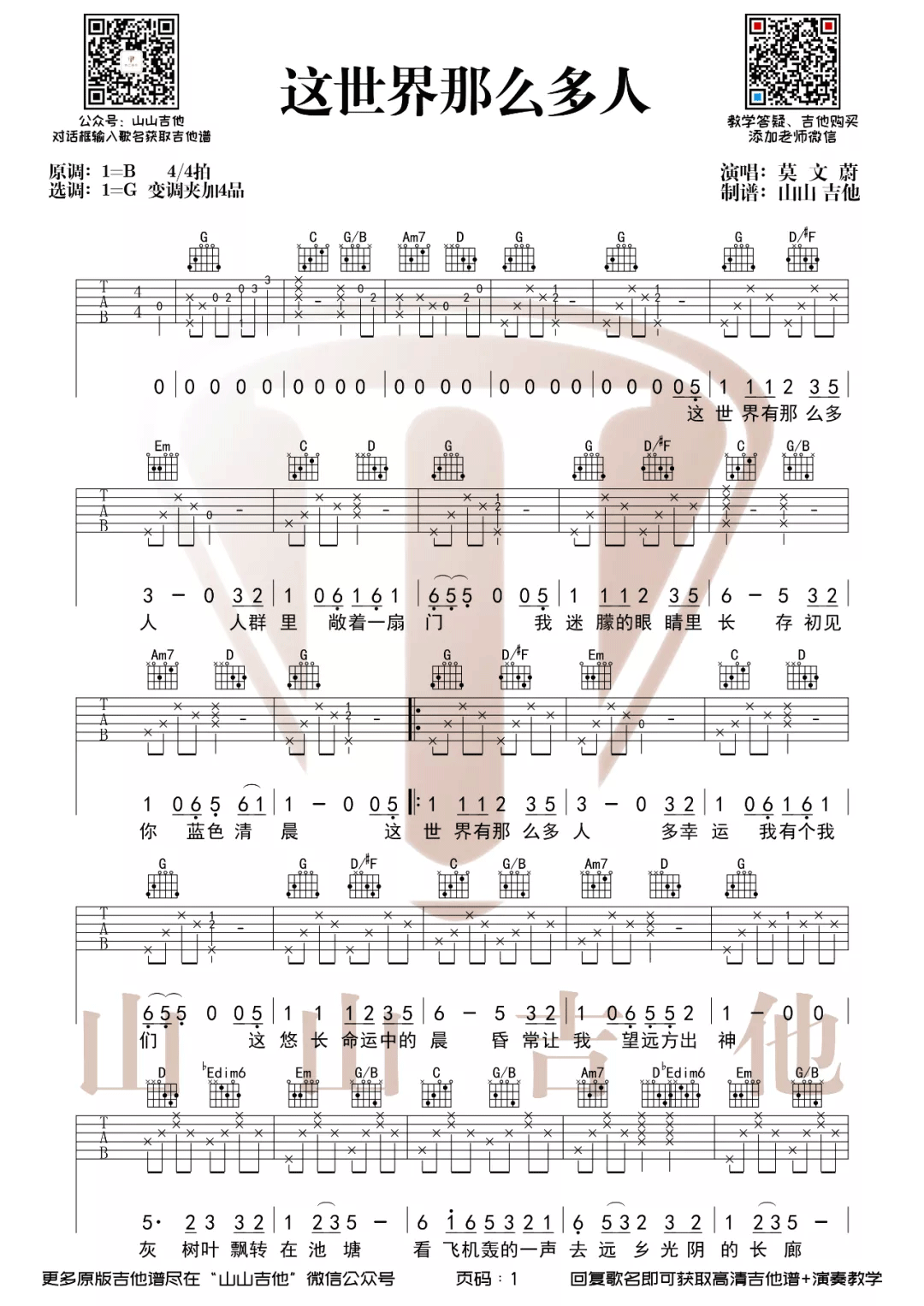 《这世界那么多人》吉他谱_莫文蔚_G调弹唱谱...