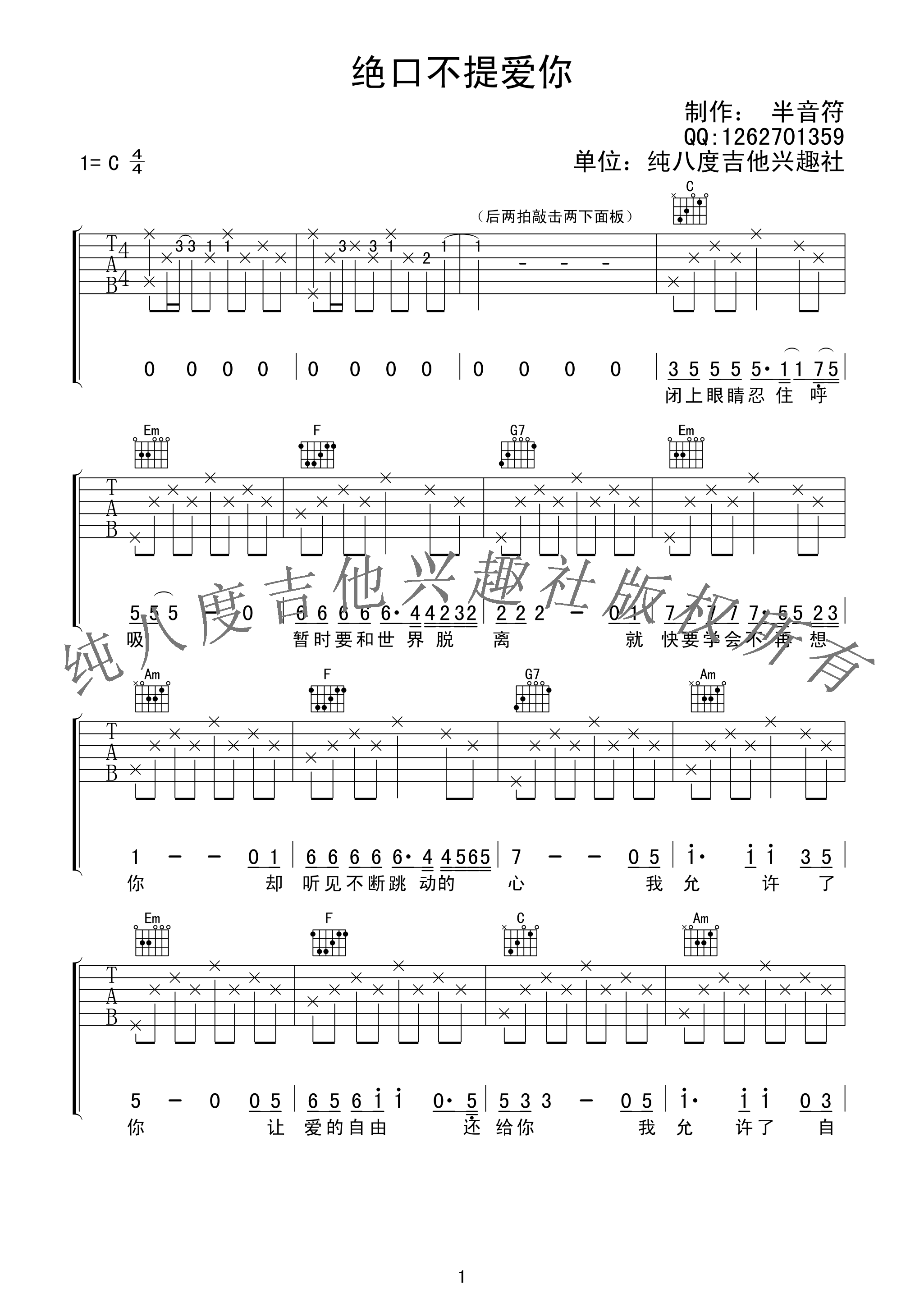 吉他郑中基《绝口不提爱你》吉他谱