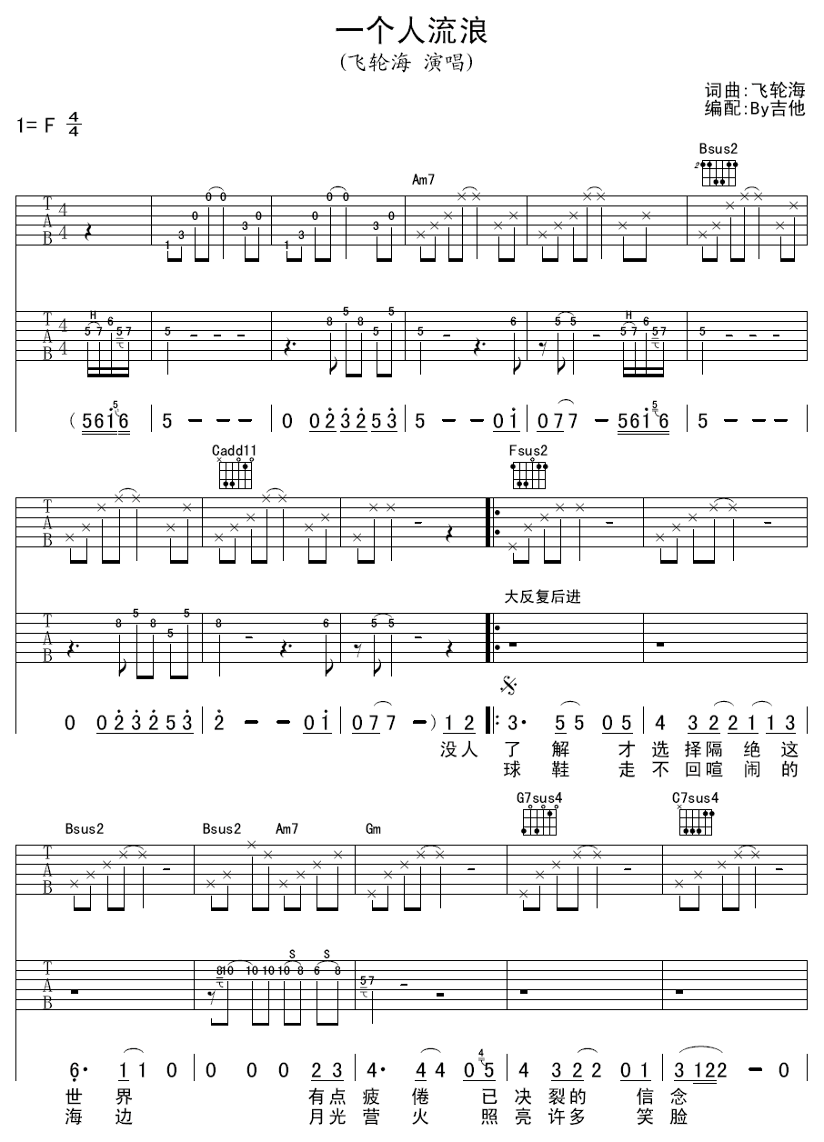 飞轮海《一个人流浪》吉他谱...