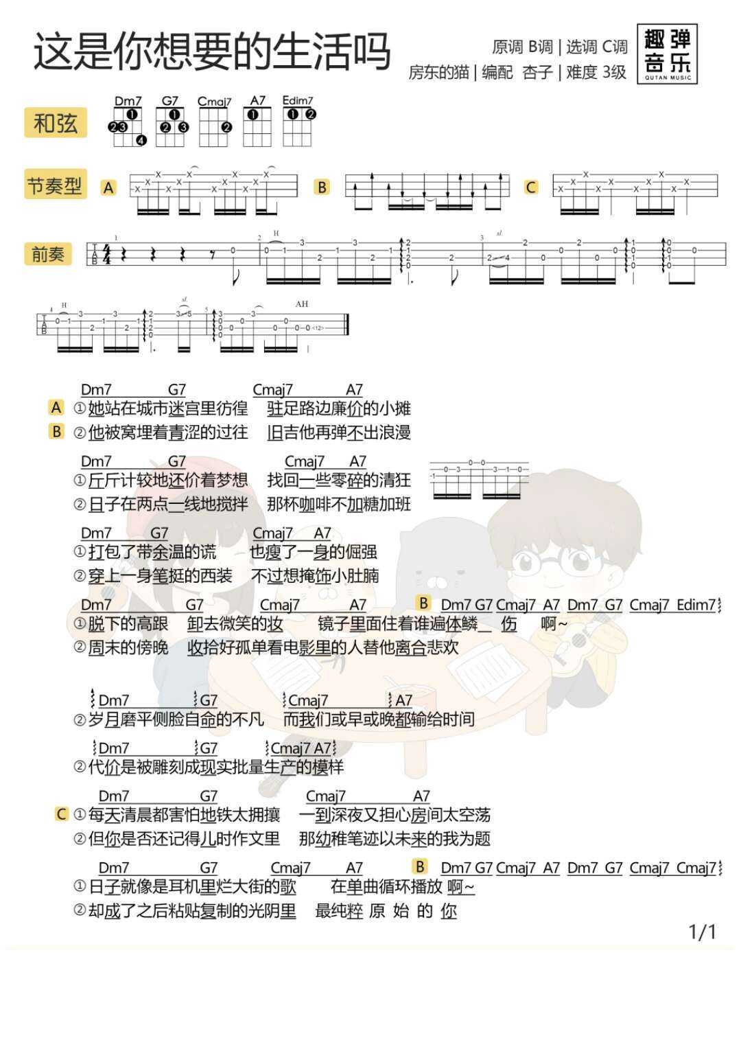 尤克里里房东的猫《这是你想要的生活吗》尤克里里谱