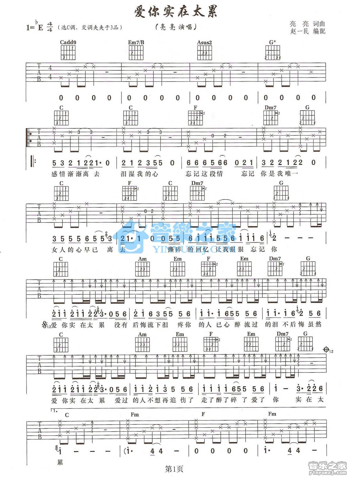 吉他刘嘉亮《爱你实在太累》吉他谱_吉他弹唱谱