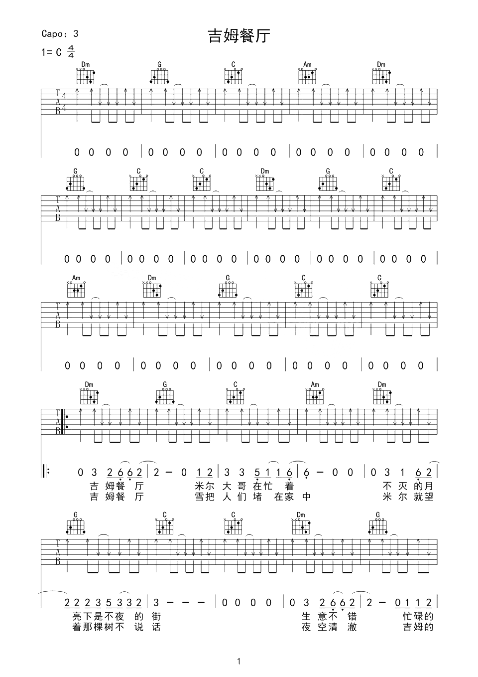 赵雷《吉姆餐厅》吉他谱,C调,CAPO夹三品。最近很喜欢赵雷的这首歌,每个人除了两点一线的生活外都需要一个类似于吉姆餐厅的地方来消愁解忧吧。端起酒杯,流泪的男人还没醉。...