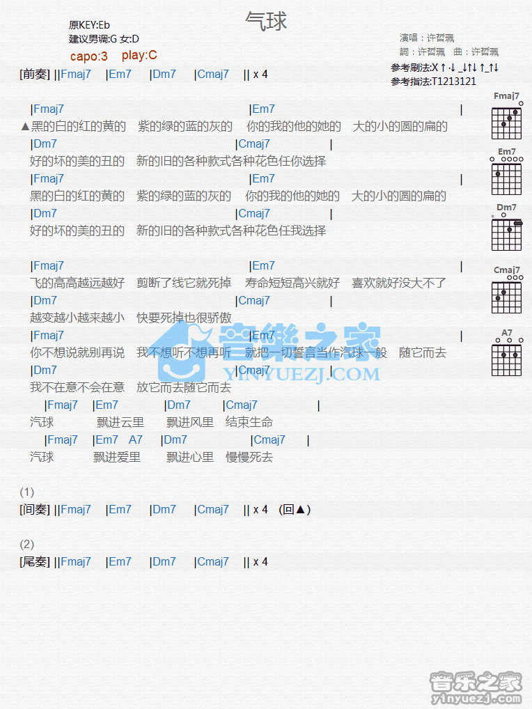 吉他许哲《气球》吉他谱_吉他弹唱谱