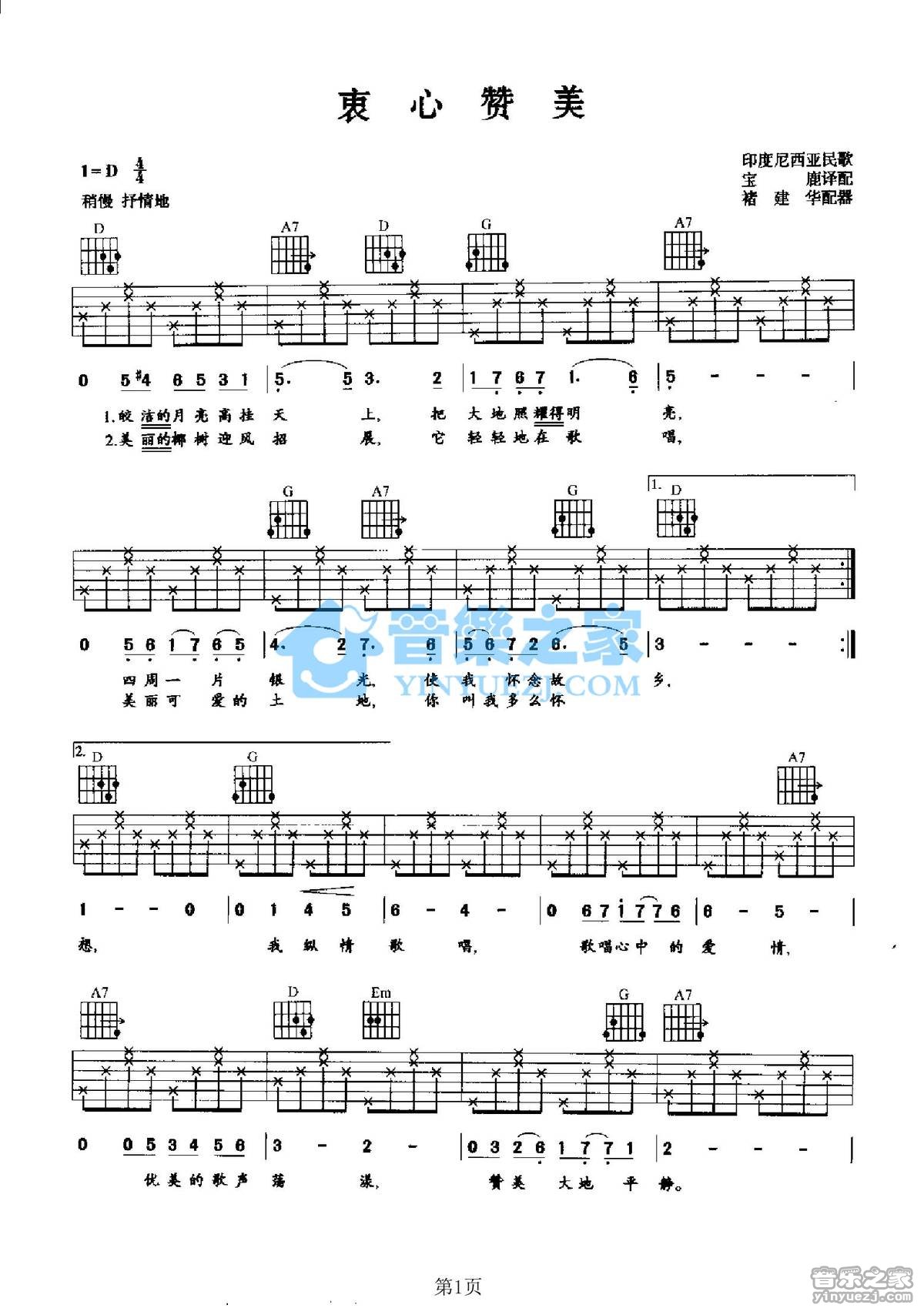 吉他印尼民歌《衷心赞美》吉他谱_吉他弹唱谱