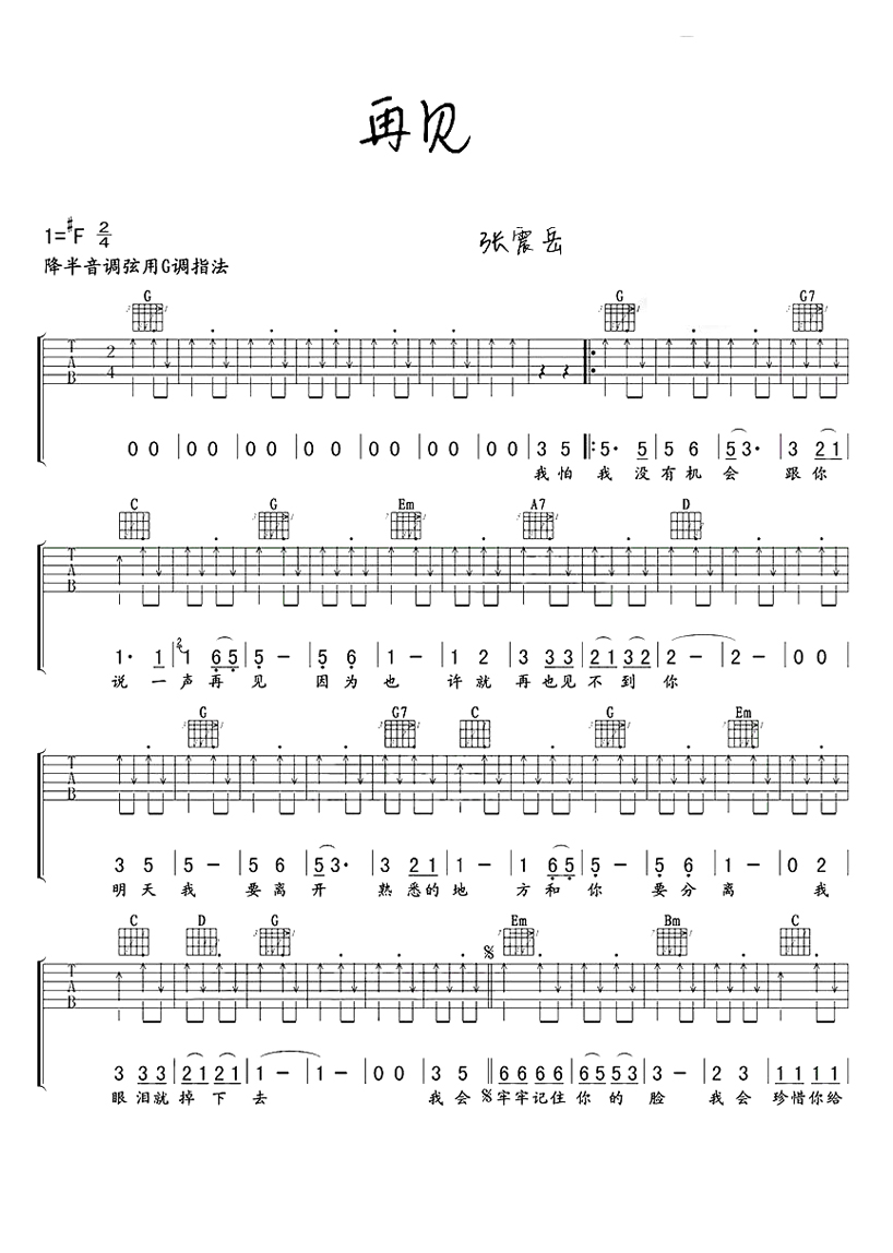 吉他张震岳 《再见》吉他谱_吉他弹唱谱