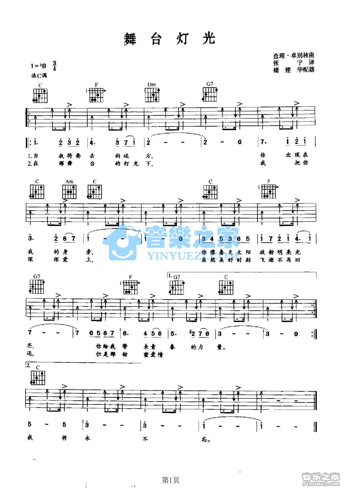 吉他查理卓别林《舞台灯光》吉他谱_吉他弹唱谱_YYZJ编配
