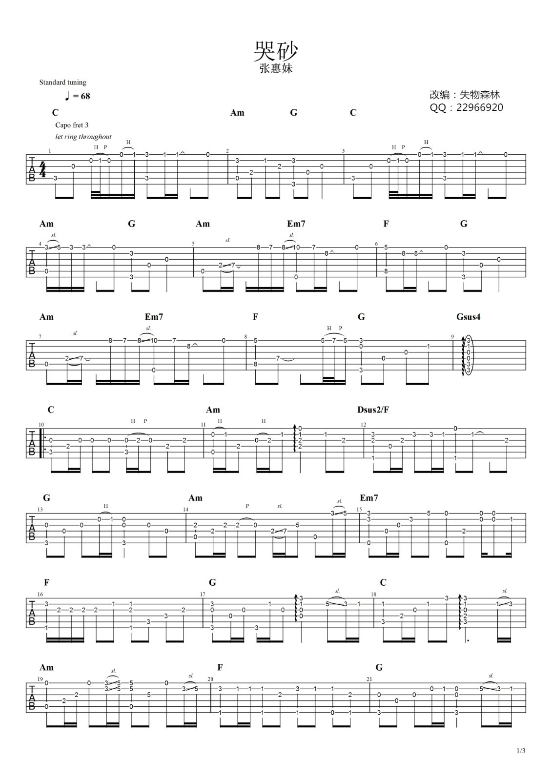 哭砂指弹谱C调附演示_失物森林编配_张惠妹...