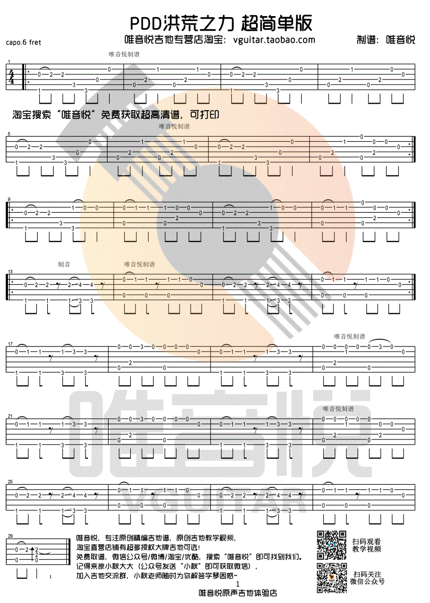 PDD洪荒之力指弹谱_超简单版_《洪荒之力》GTP下载_吉他独奏谱...