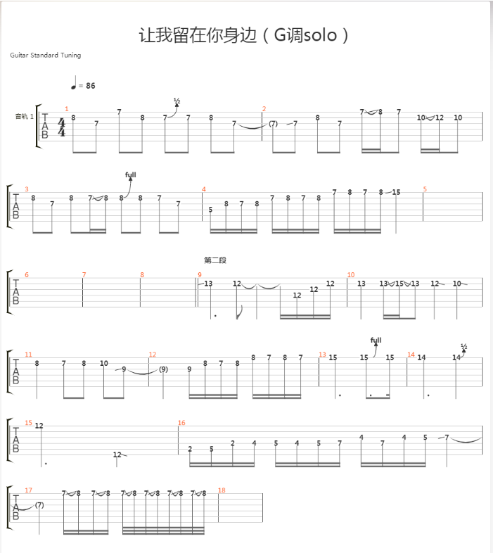 吉他陈奕迅《让我留在你身边》吉他谱_GTP谱下载_G调solo