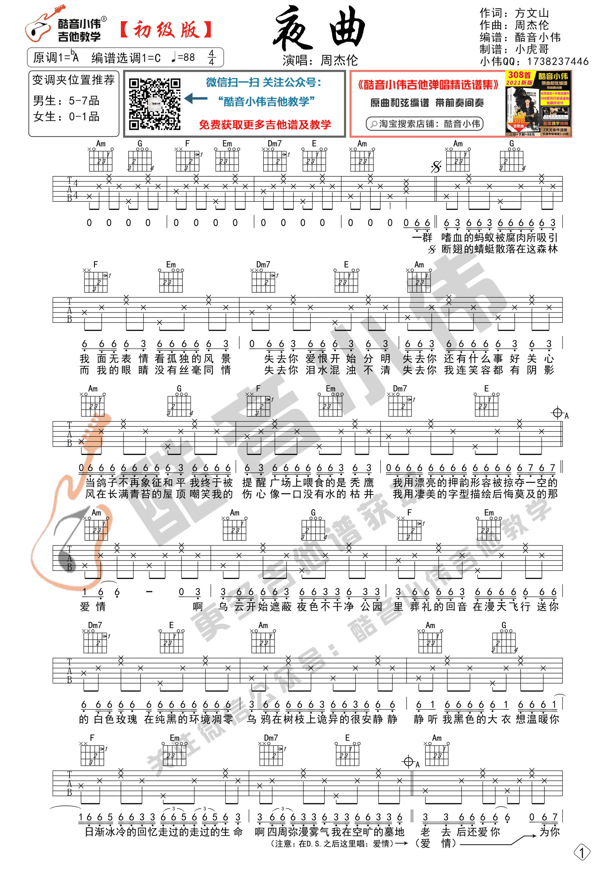 周杰伦-夜曲吉他谱(酷音小伟吉他教学)...