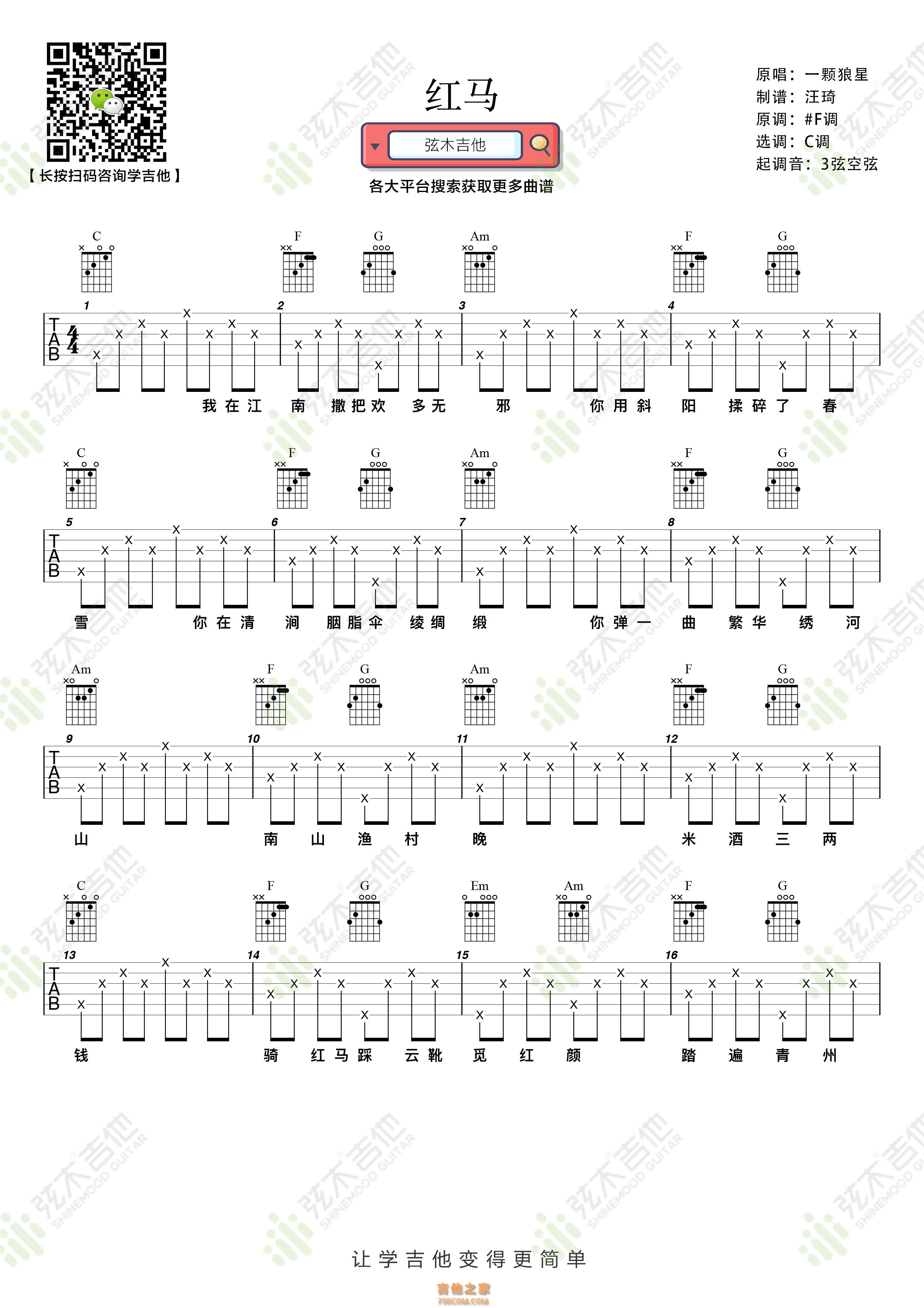 吉他一颗狼星《红马》吉他谱 弦木吉他